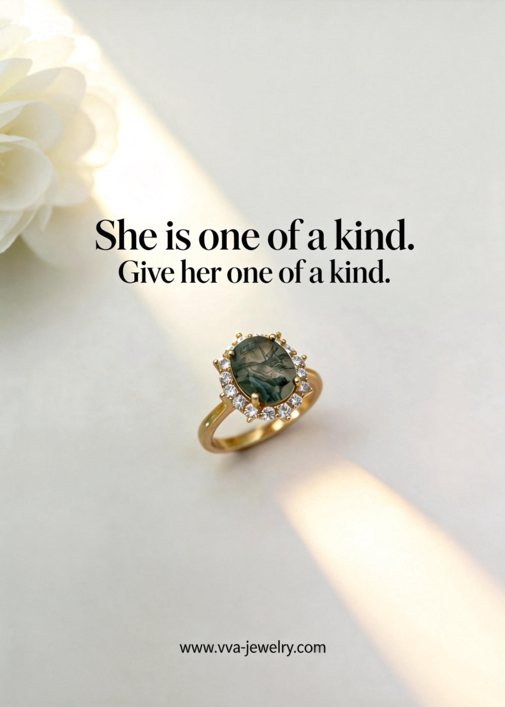 Inspired by the quiet power of nature, VVA Jewelry redefines elegance through the vivid depths of Moss Agate, Black Onyx, Blue Moonstone, and Rhodolite Garnet.