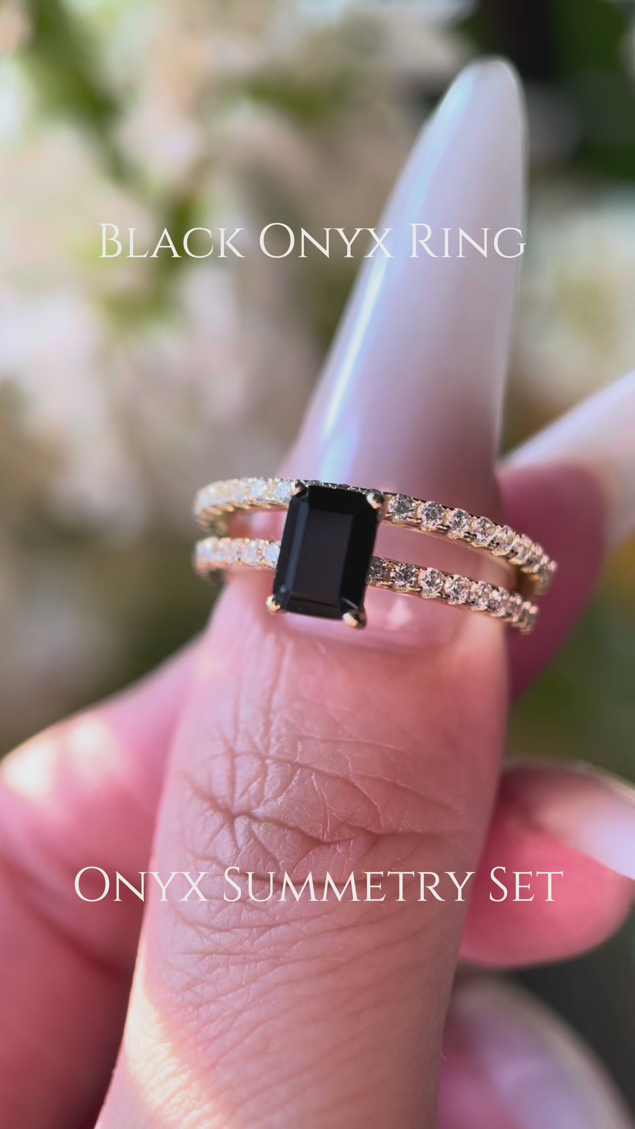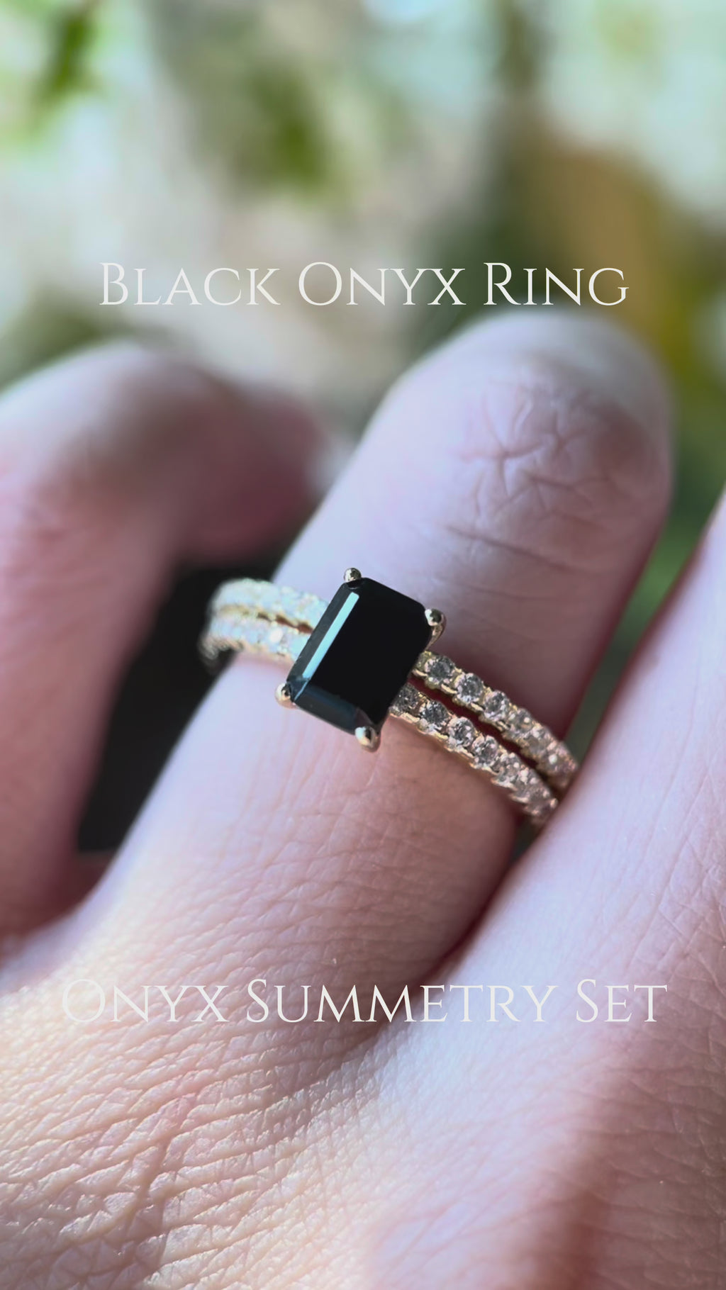【Ensemble Onyx Summetry】Ensemble de 2 bagues de fiançailles en onyx noir naturel, taillées en baguette, 1 carat, faites à la main