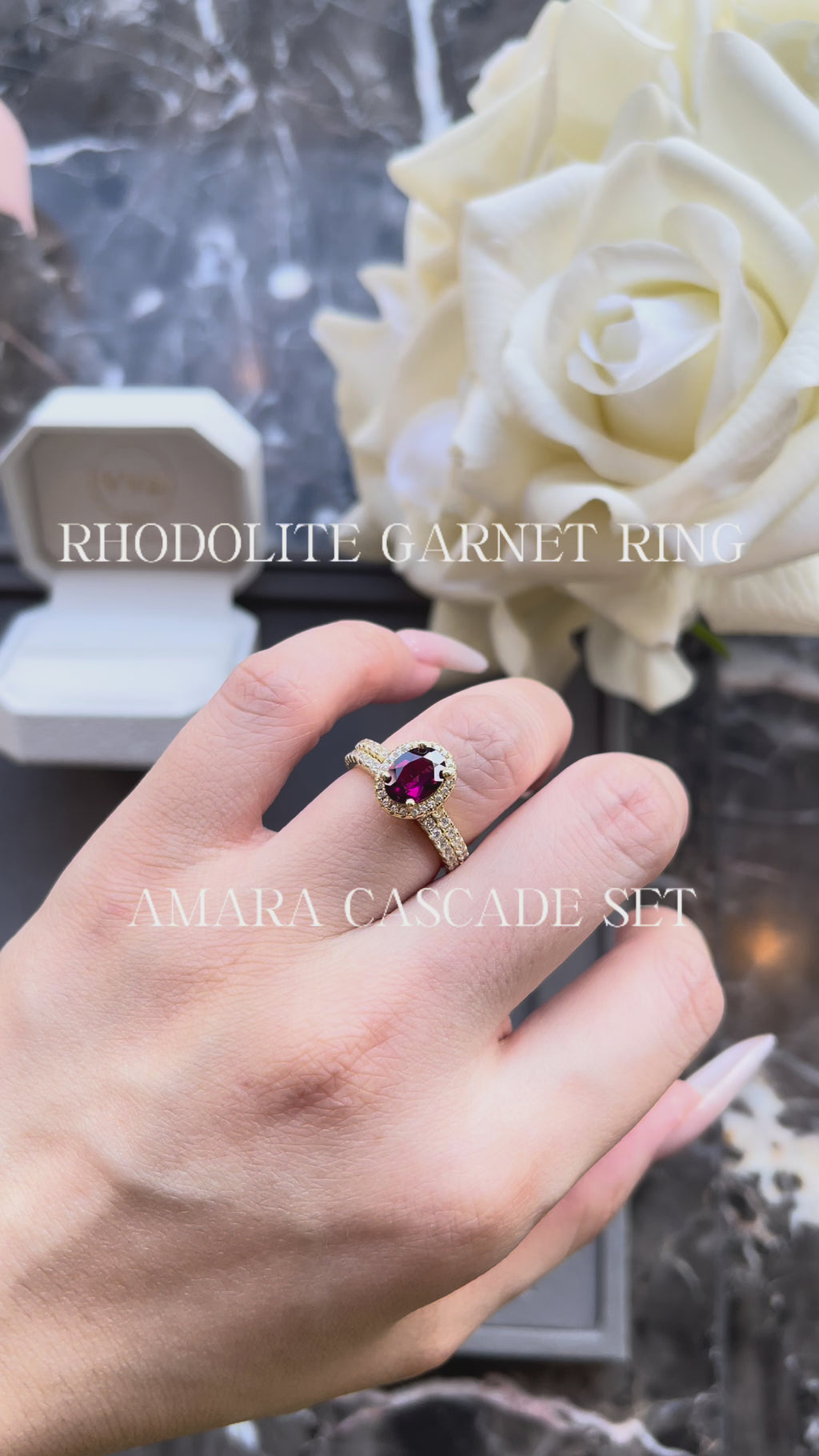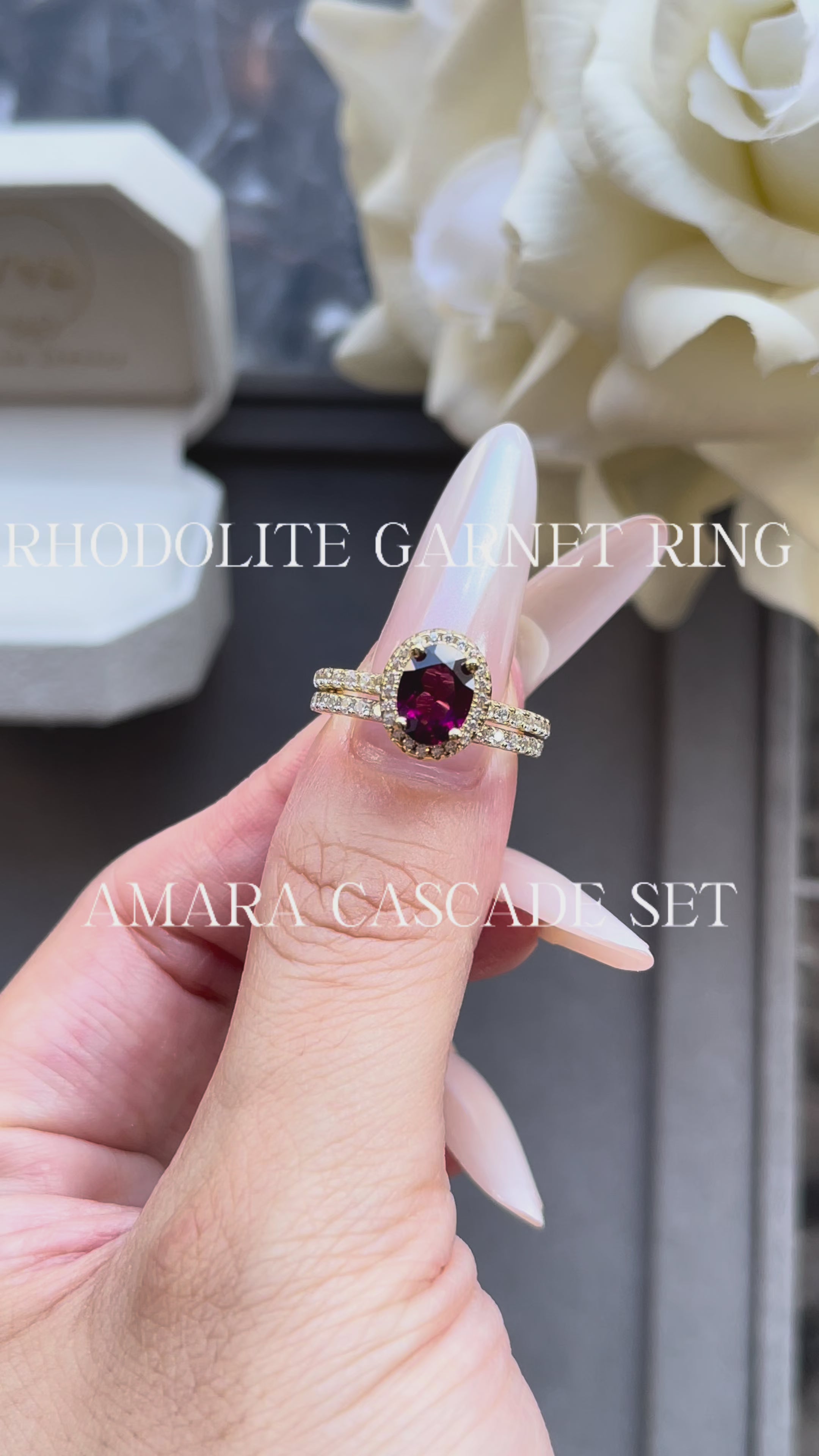 Introducing the Amara Cascade—a stunning handcrafted engagement ring featuring a magnificent 1.5ct natural rhodolite garnet in an elegant oval cut. This exquisite piece celebrates the deep, passionate crimson tones that make rhodolite garnet truly captivating. Each ring is individually created by skilled artisans who honor the gemstone's natural beauty and unique characteristics. The oval shape maximizes brilliance while offering a sophisticated silhouette that flatters any hand. Ideal for those who appreciate authentic gemstones and bespoke craftsmanship, this ring serves as a meaningful symbol of commitment that stands apart from conventional choices. A timeless treasure that grows more precious with every moment shared.