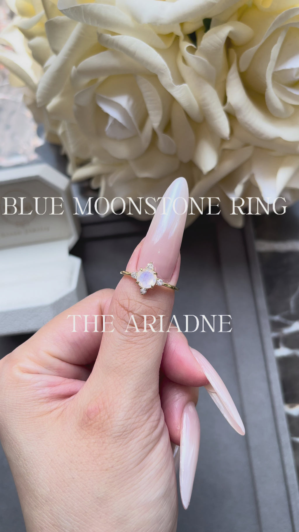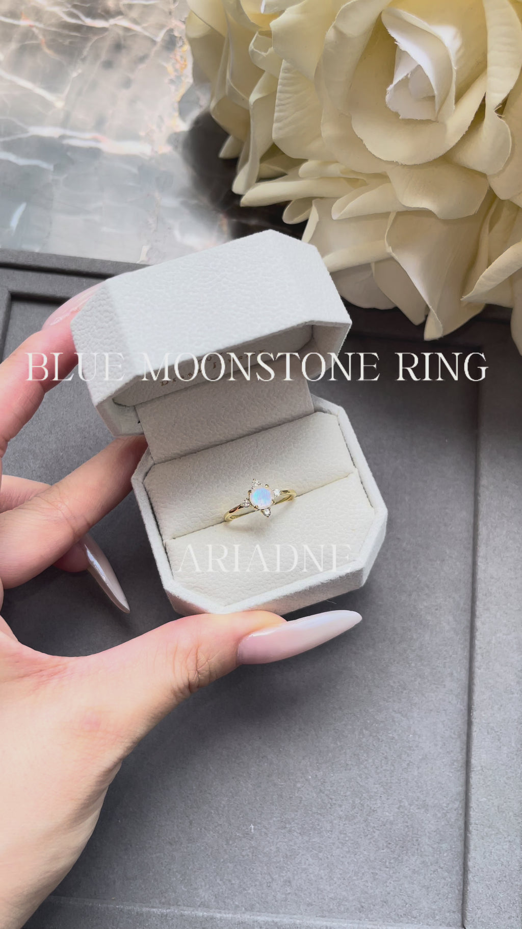 【ARIADNE】Unique Handmade Natural Blue Moonstone Engagement Ring Round Shape 0.8ct