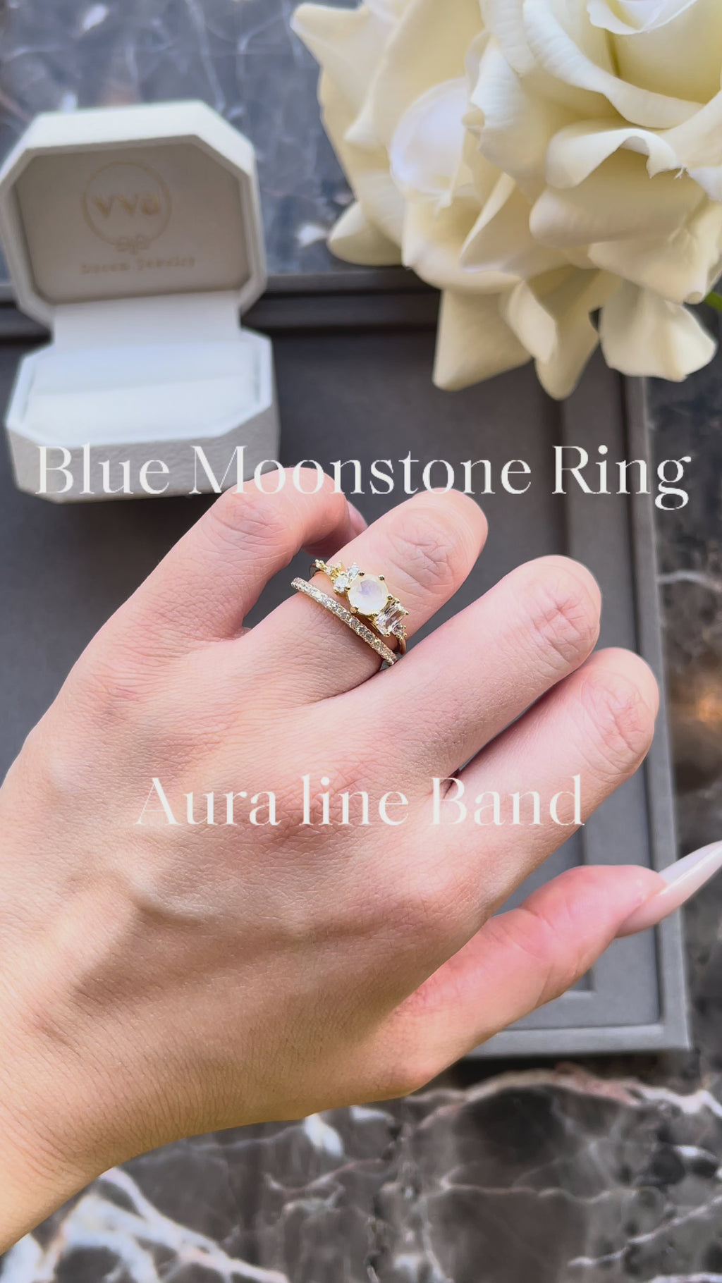 【Auraline】Unique Handmade Natural Blue Moonstone Engagement Ring 0.8ct Round Shape