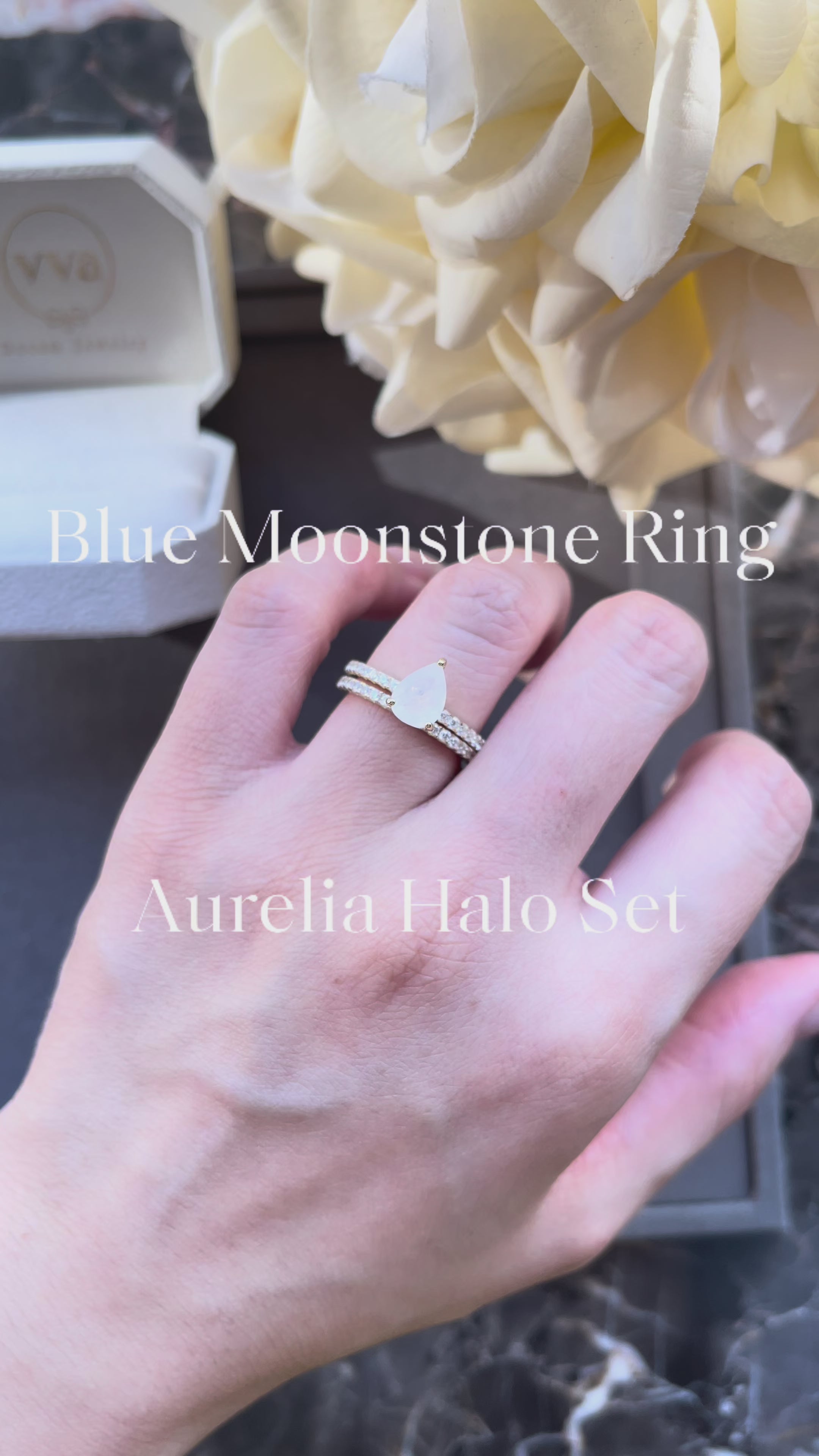 【Aurelia】Unique Handmade Natural Blue Moonstone Engagement Ring 0.8ct Pear Shape