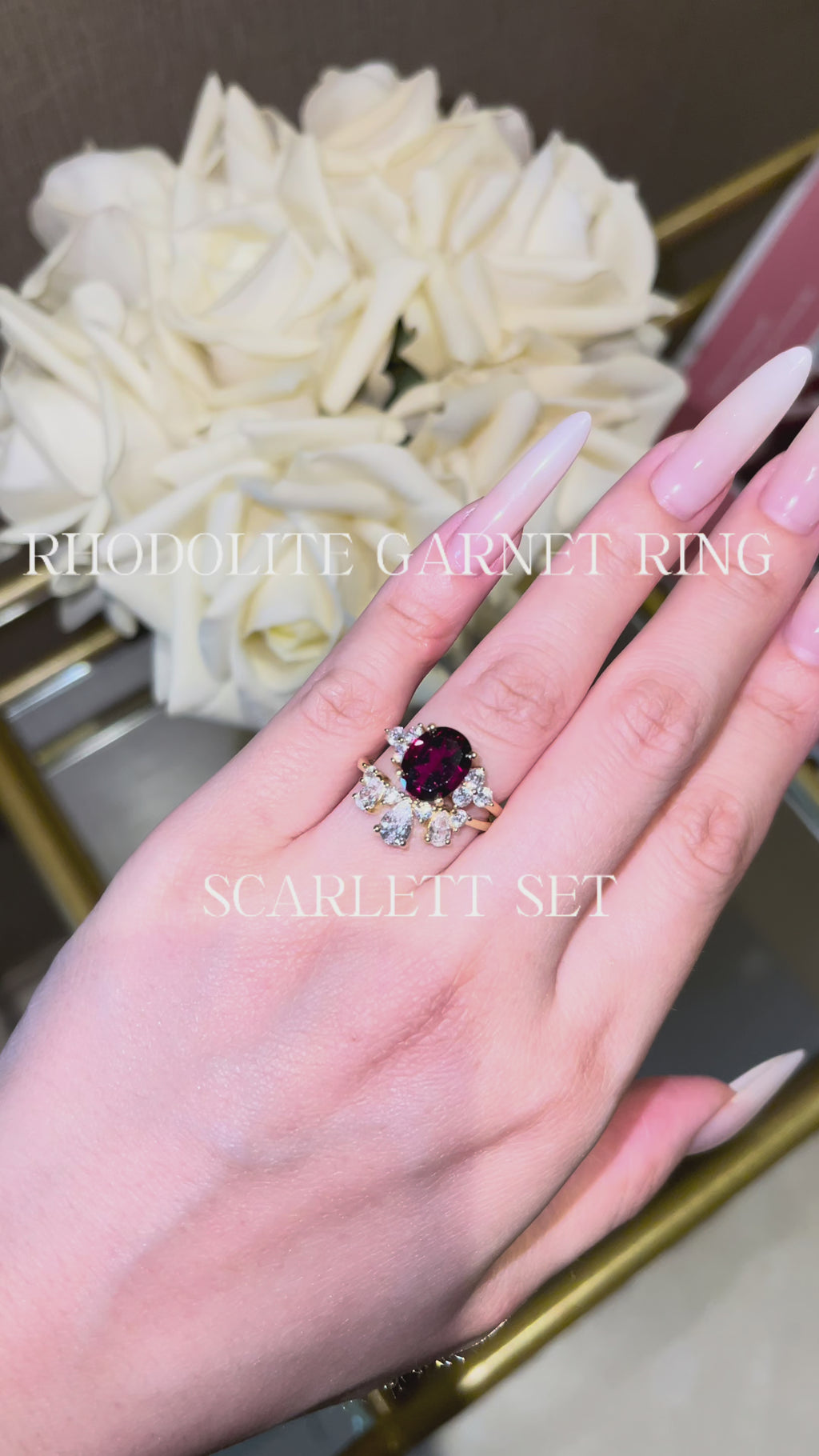 【CARMEN】Handmade Natural Rhodolite Garnet Engagement Ring 3ct Oval Shape