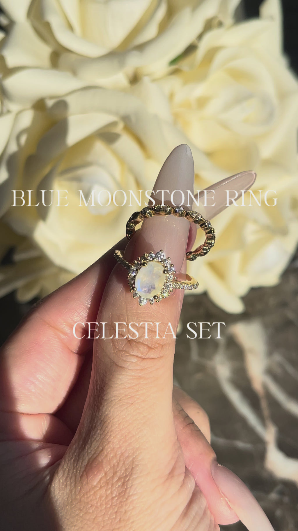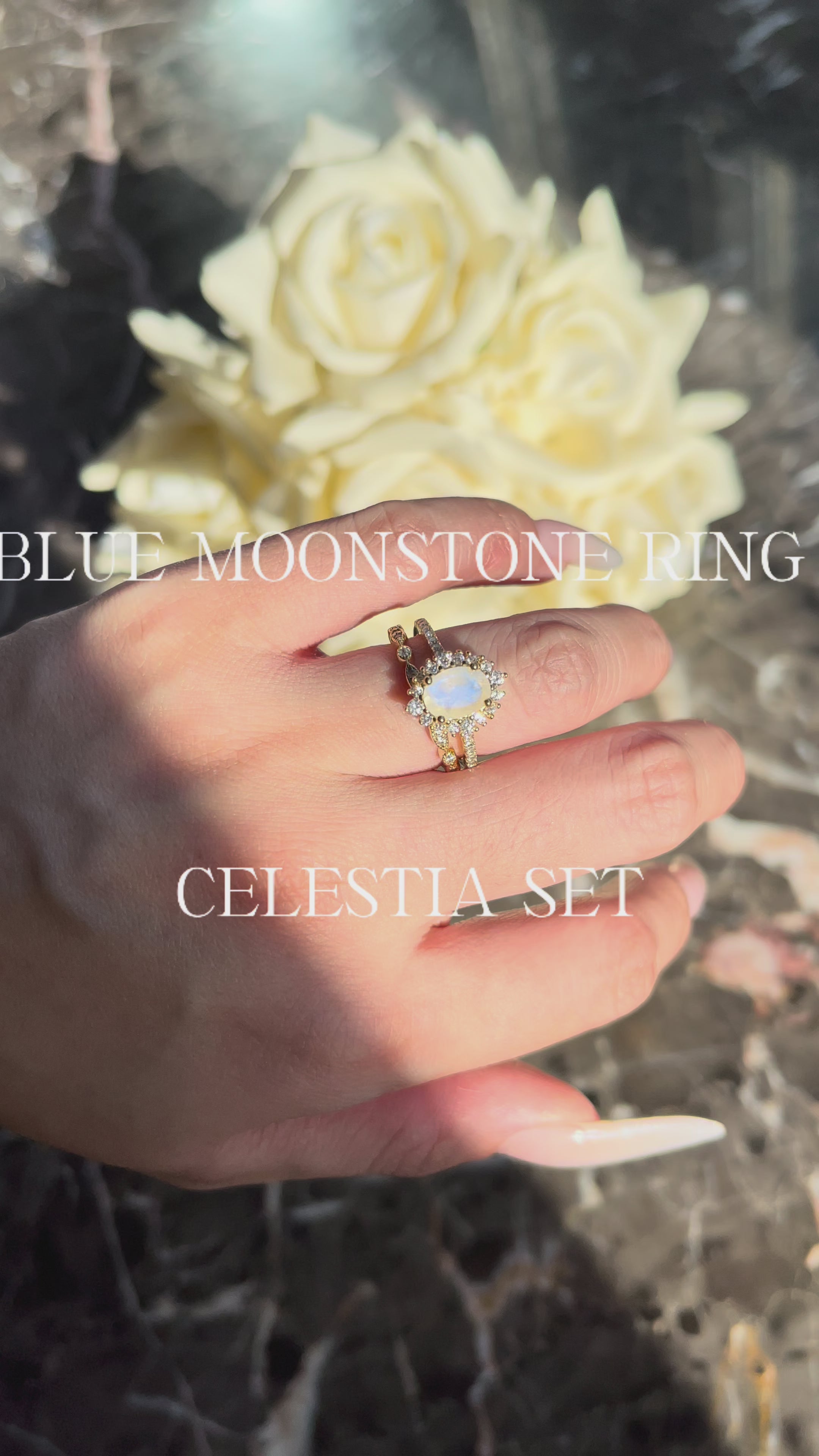 【Celestia】Unique Handmade Natural Blue Moonstone Engagement Ring 1.5ct Oval Shape