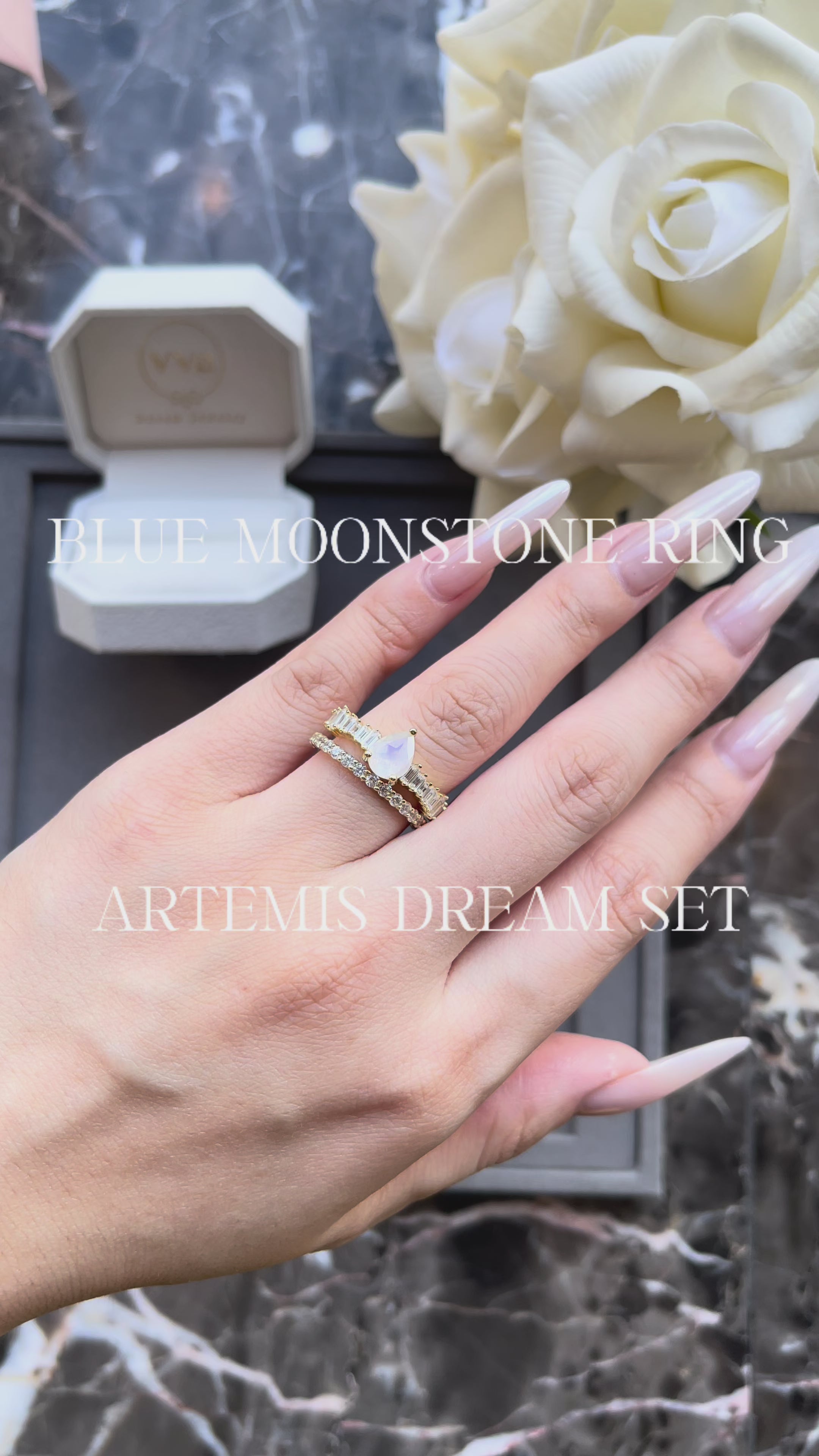 【Chalice】Unique Handmade Natural Blue Moonstone Engagement Ring 0.8ct Pear Shape