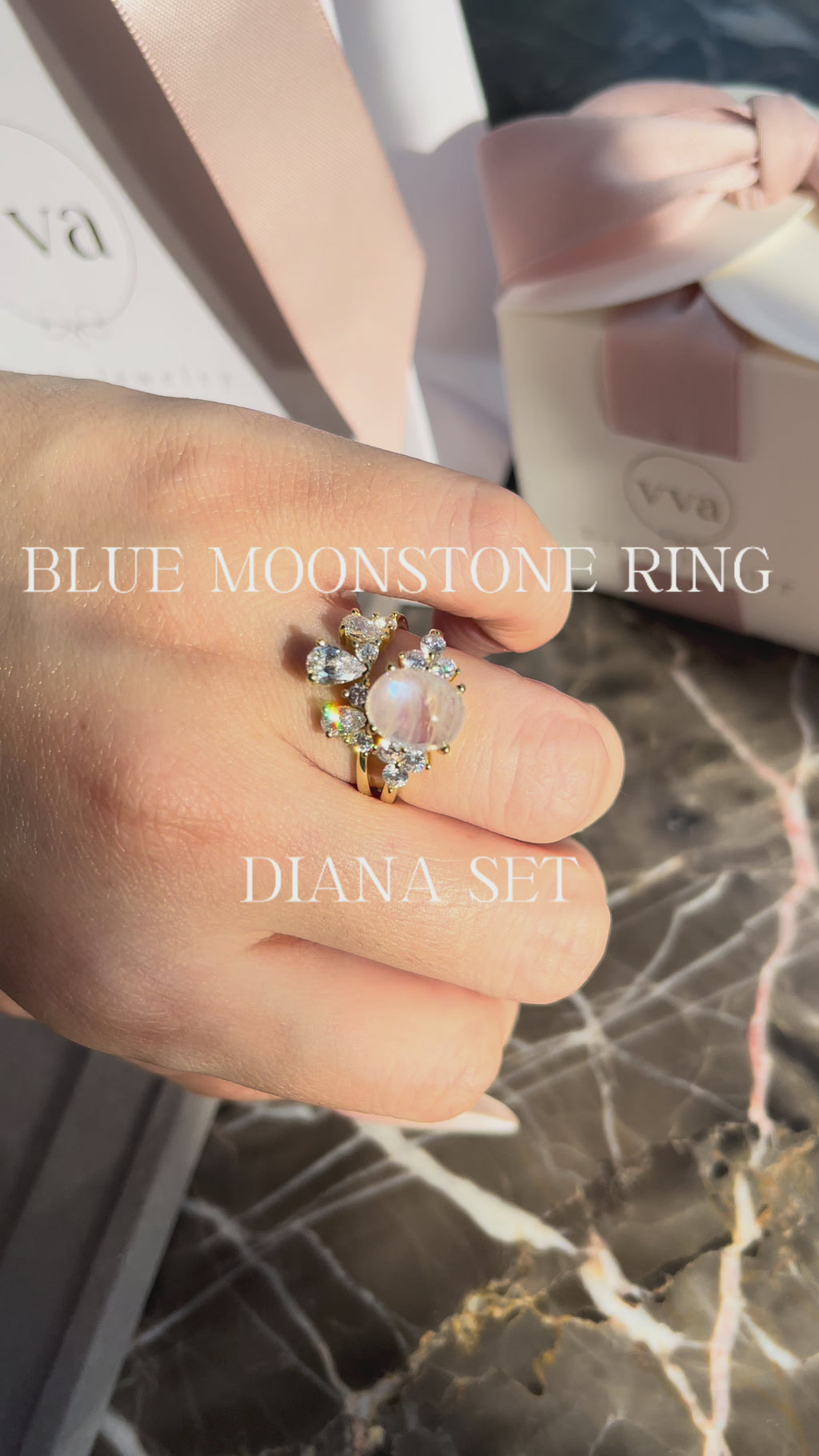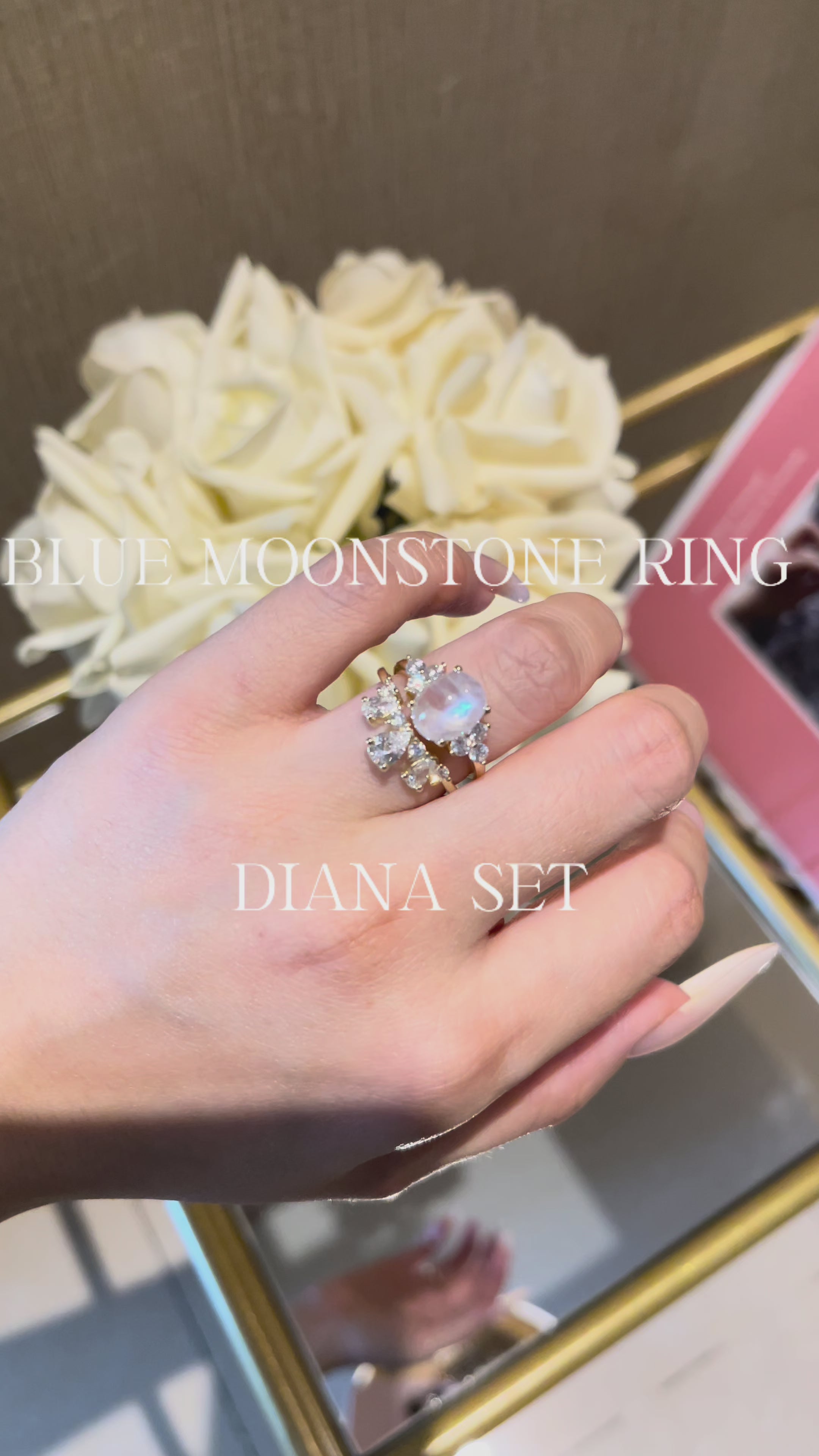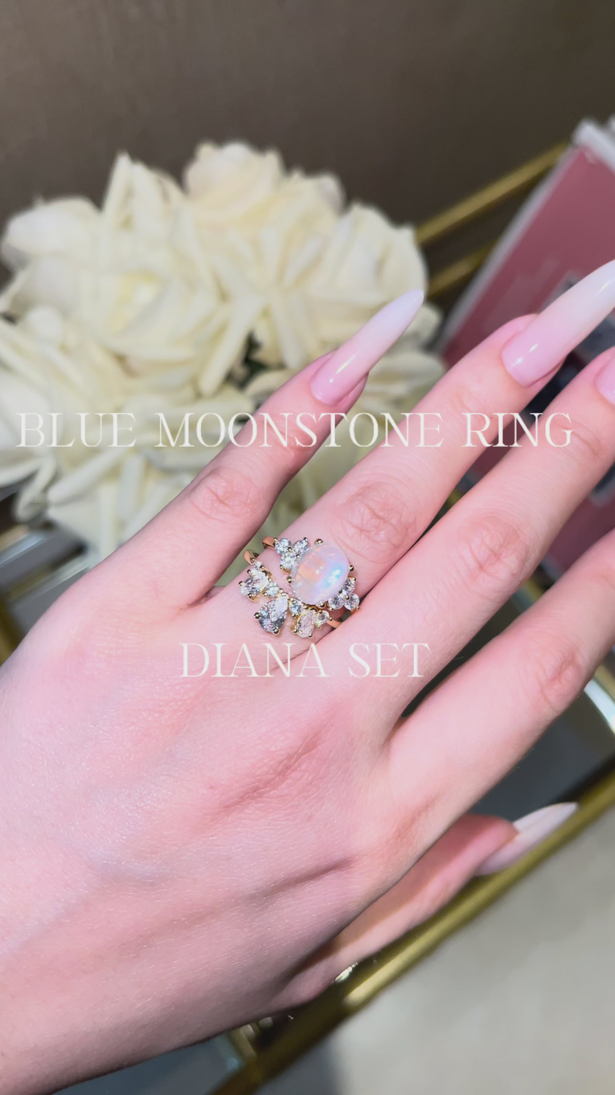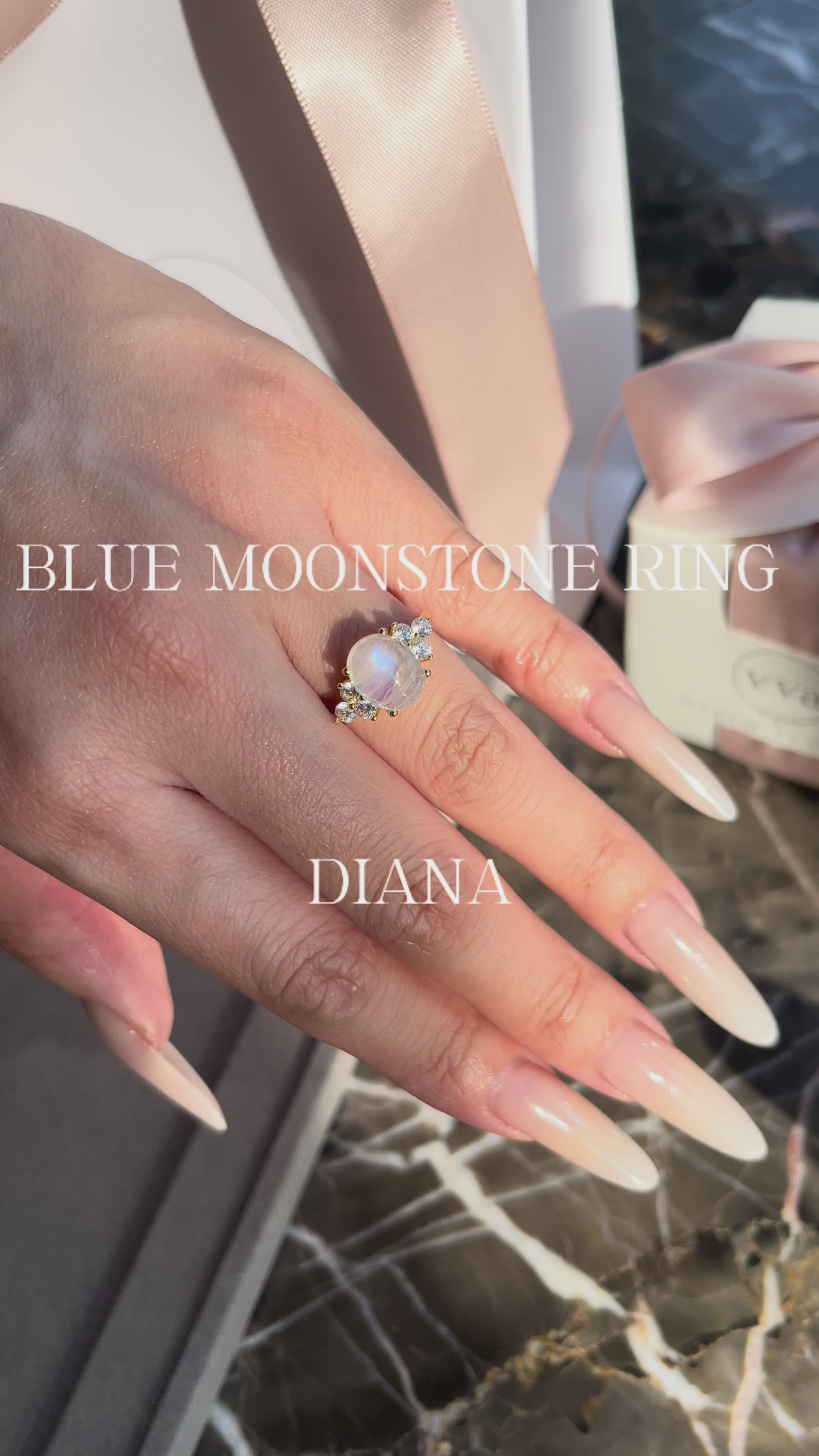 【DIANA】Unique Handmade Natural Blue Moonstone Engagement Ring 3ct Oval Shape
