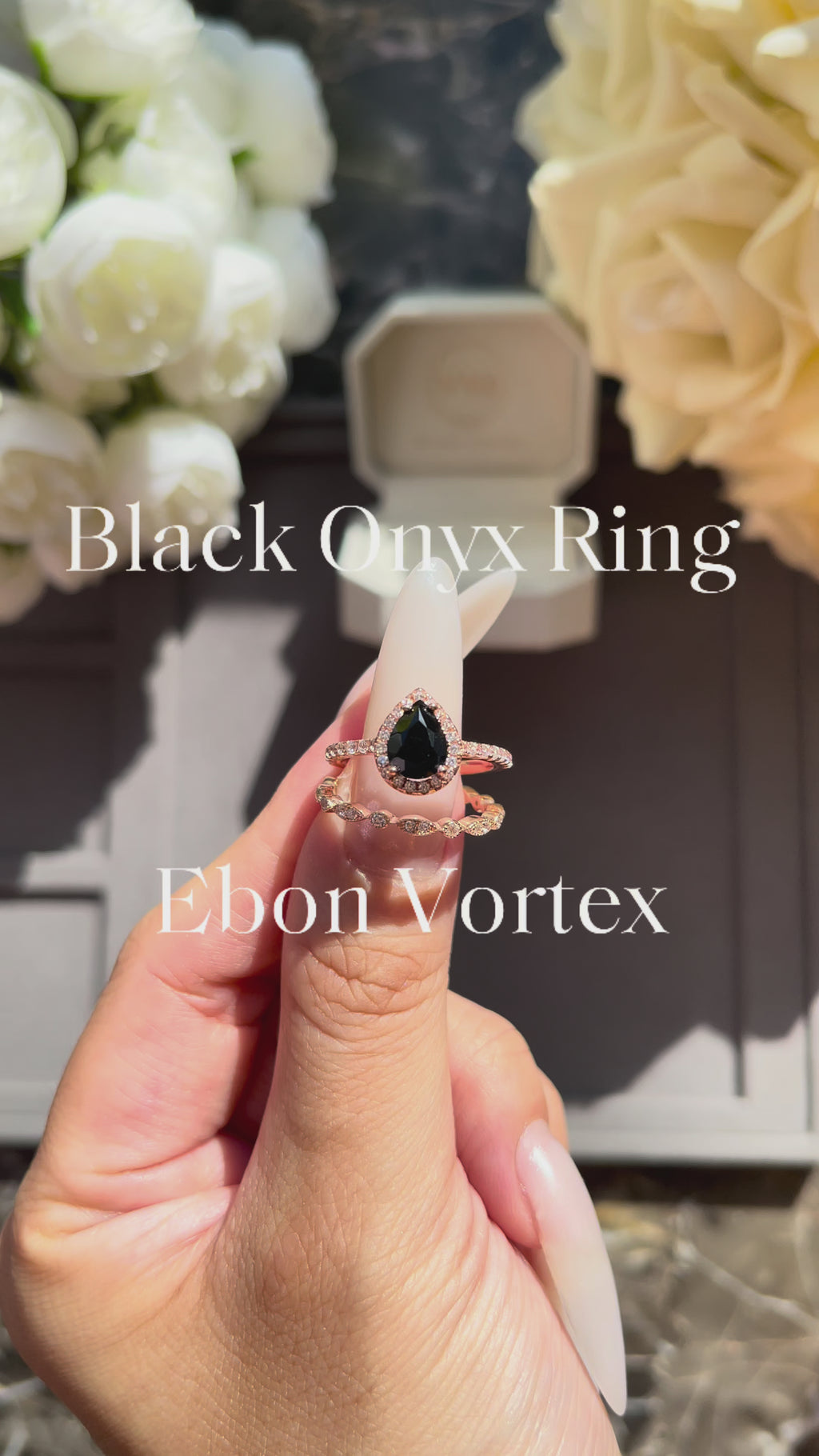 【Ebon Vortex】Handmade Natural Black Onyx Engagement Ring 0.8ct Pear Shape