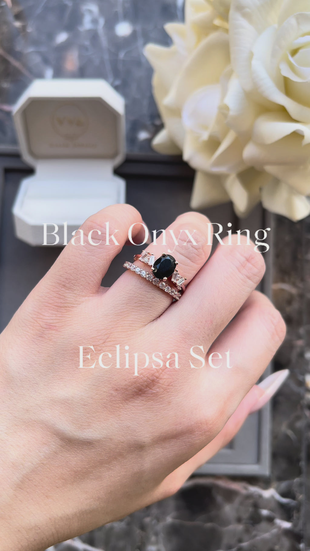 【Eclipsa】Handmade Natural Black Onyx Engagement Ring 1.5ct Oval Shape