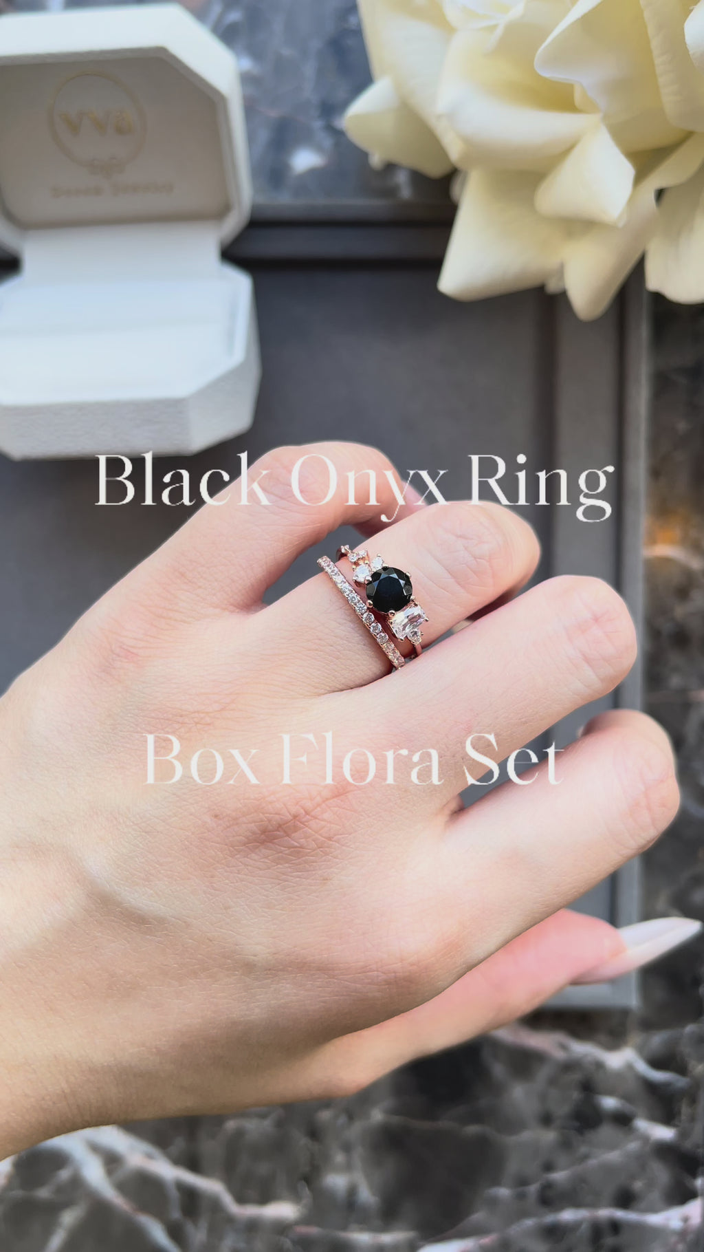 【Flora】Handmade Natural Black Onyx Engagement Ring 0.8ct Round Shape