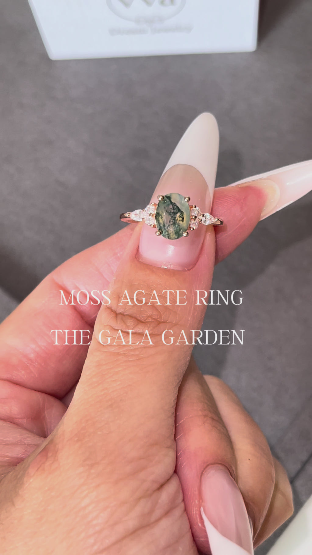 【Gala Garden】Unique Handmade Natural Moss Agate Engagement Ring 1.5ct Oval Shape
