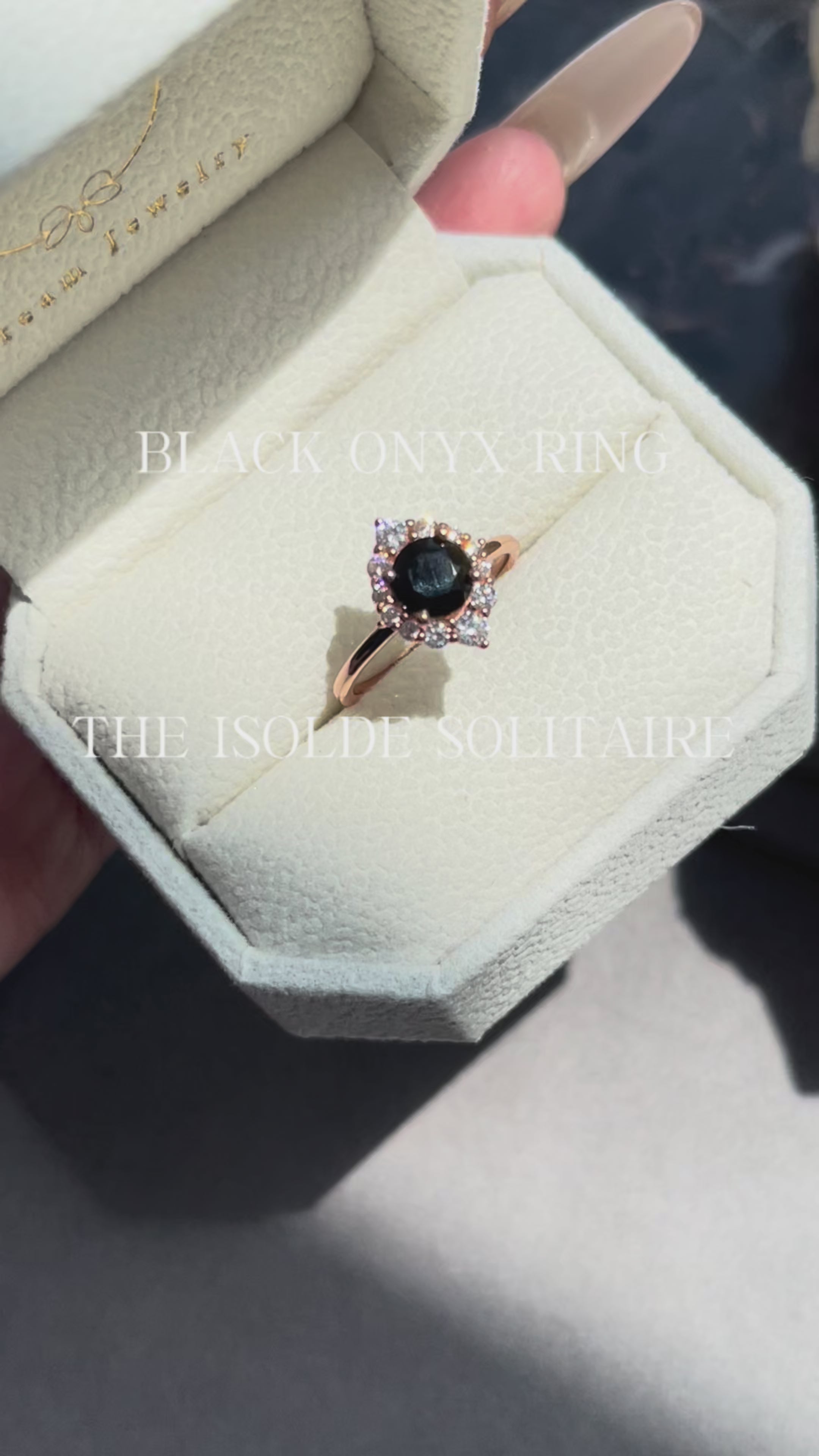 Introducing the Isolde ring, a striking handmade engagement piece featuring a natural black onyx stone in a graceful round cut, weighing 0.8ct. This distinctive design celebrates individuality and timeless elegance for those who dare to be different. Black onyx carries profound meaning—symbolizing confidence, grounding energy, and inner strength—making it an inspired choice for a lifelong commitment. Each ring is carefully crafted by hand, ensuring exceptional quality and a personal touch that mass-produced pieces simply cannot match. Whether you're drawn to its sophisticated aesthetic or its deeper significance, the Isolde ring stands as a bold statement of authenticity and refined taste.