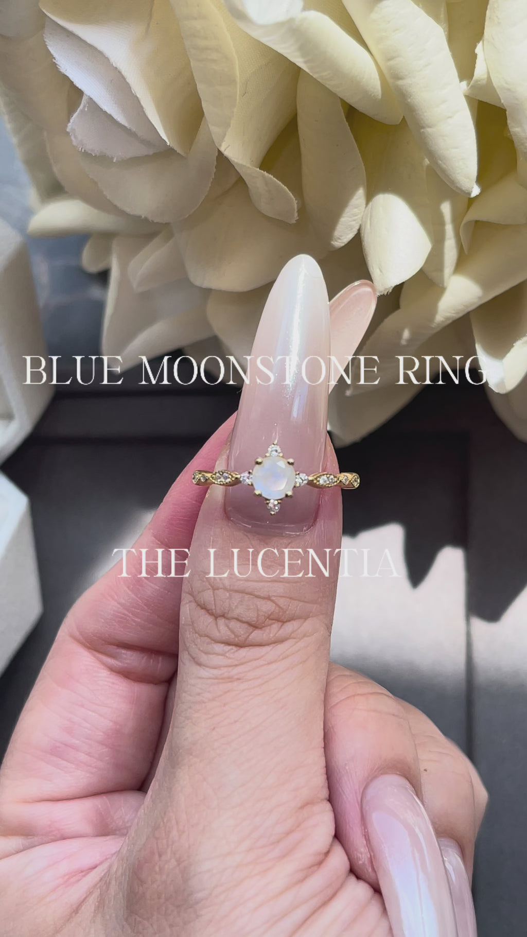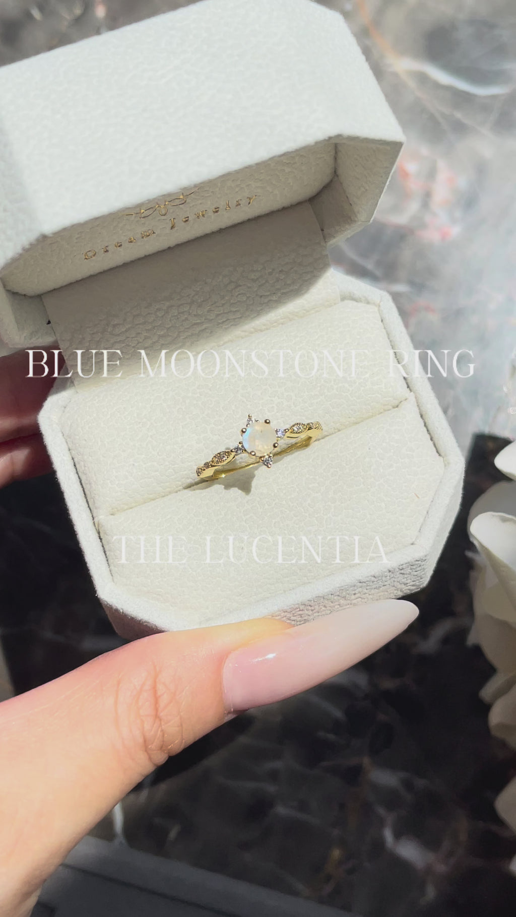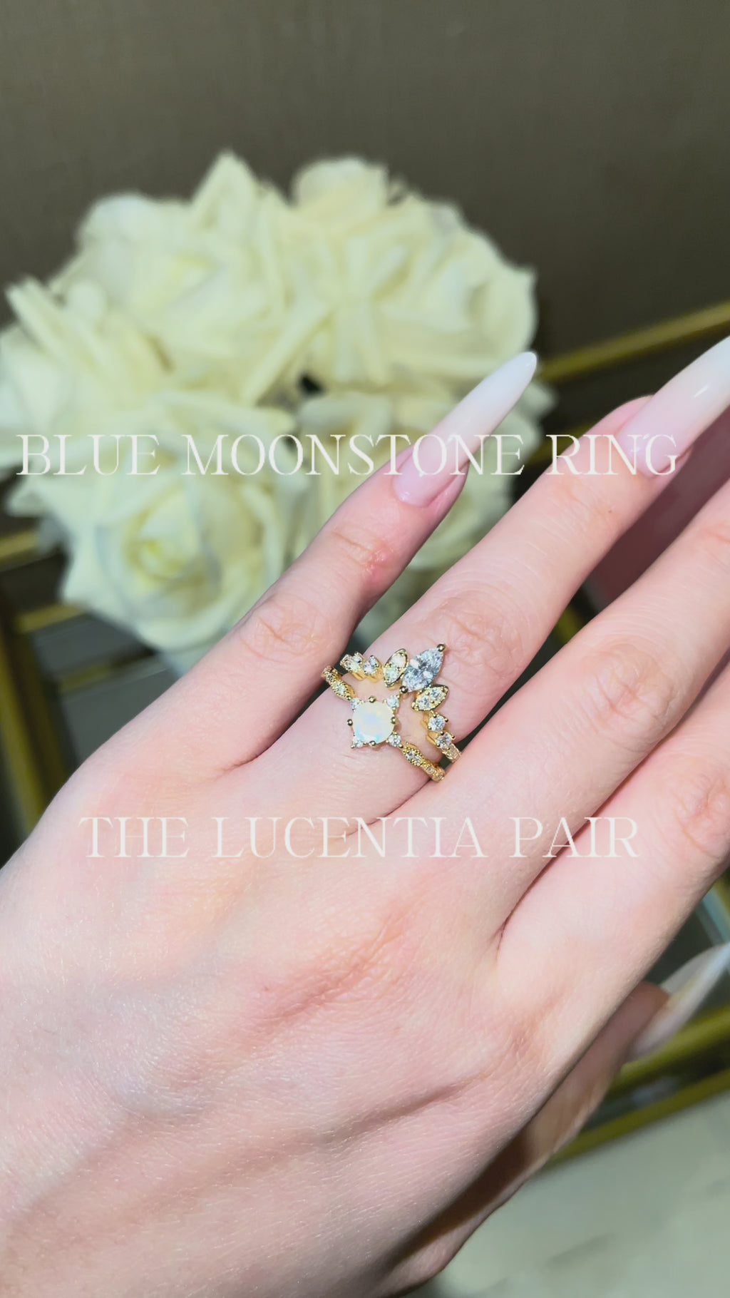 Introducing the Lucentia engagement ring, a breathtaking piece featuring a radiant 0.5ct natural blue moonstone cut in an elegant princess shape. Skillfully handcrafted to highlight the stone's captivating luminescence, this ring captures light in a way that feels almost otherworldly. The artisanal design ensures every detail reflects quality and care, making it a meaningful choice for those who value authenticity and natural gemstone beauty. Wear a ring as unique and special as your love story.