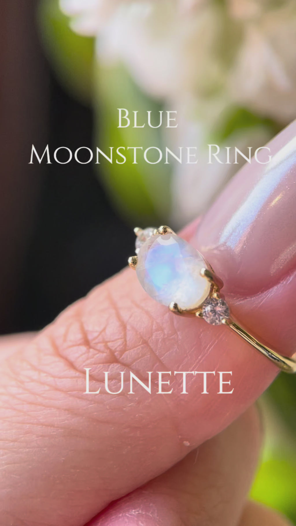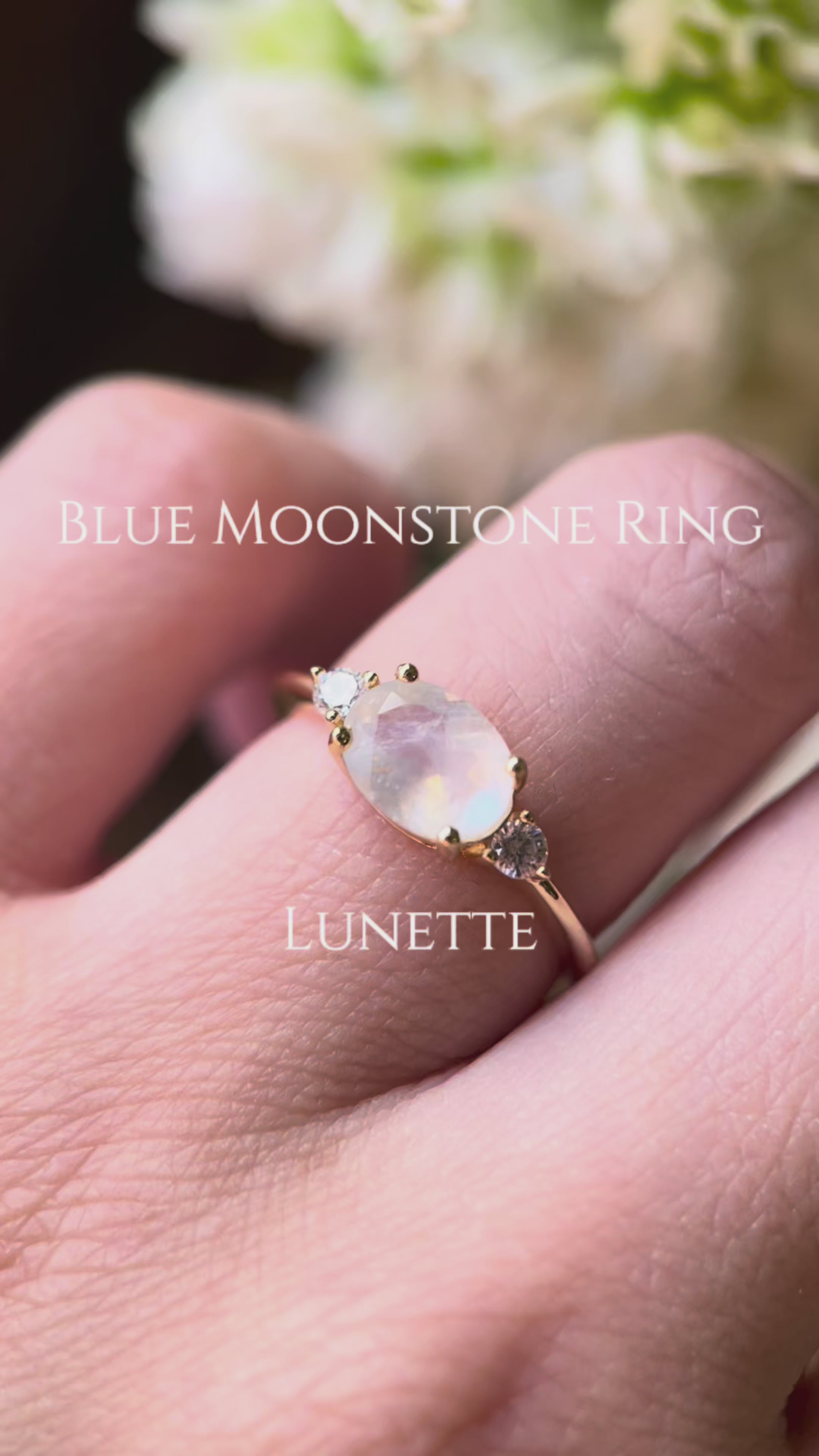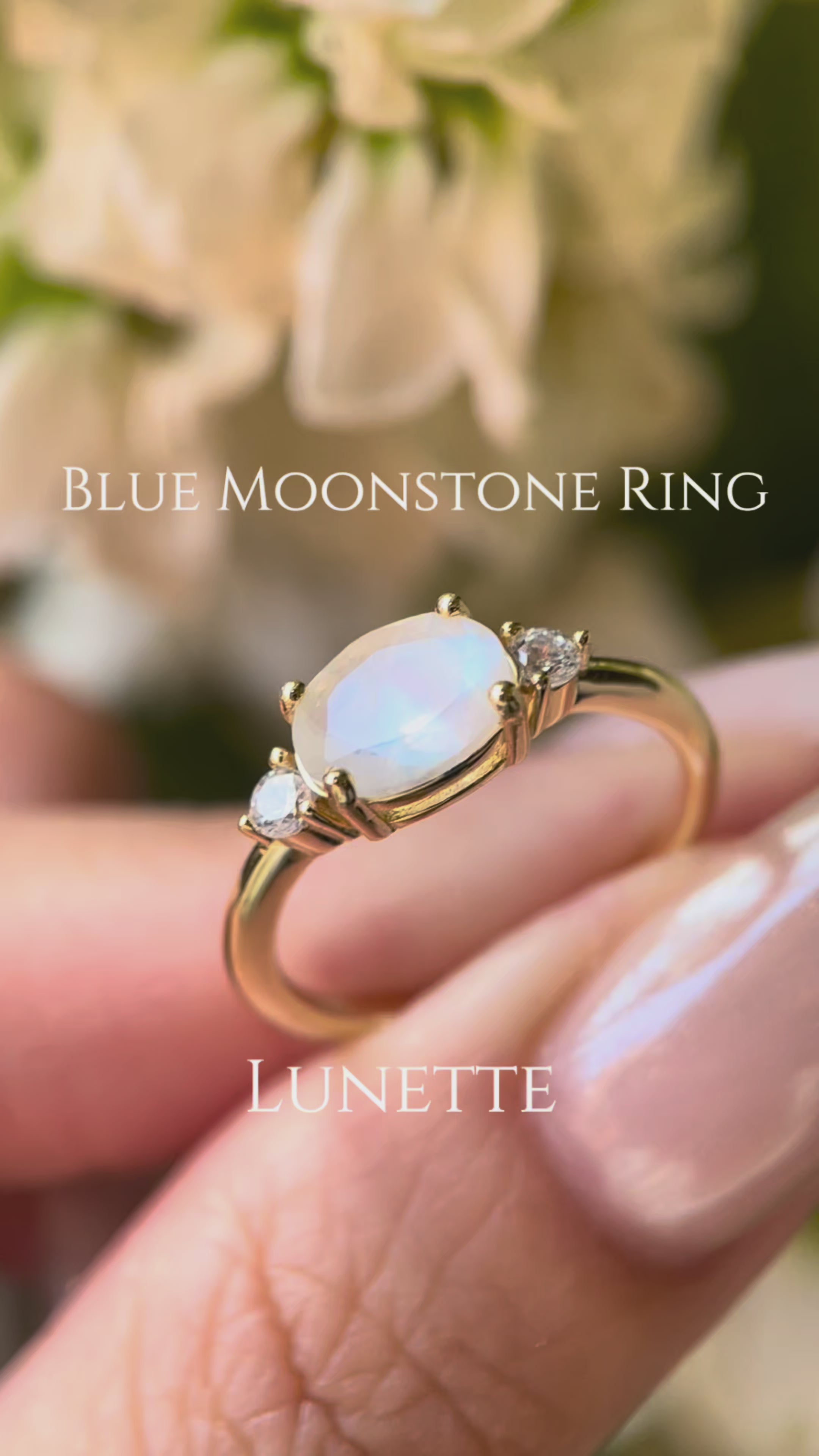 【Lunette】Unique Handmade Natural Blue Moonstone Engagement Ring Set Oval Cut
