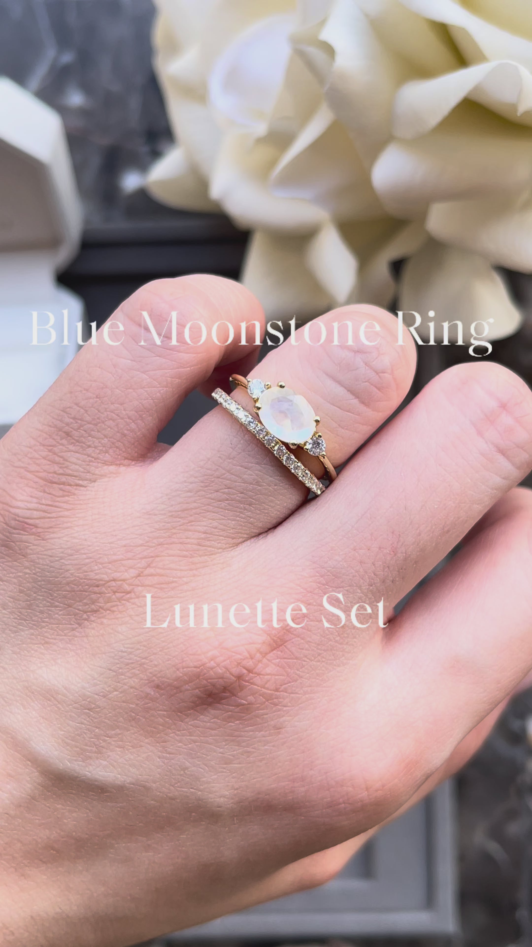 【Lunette】Unique Handmade Natural Blue Moonstone Engagement Ring Set Oval Shape