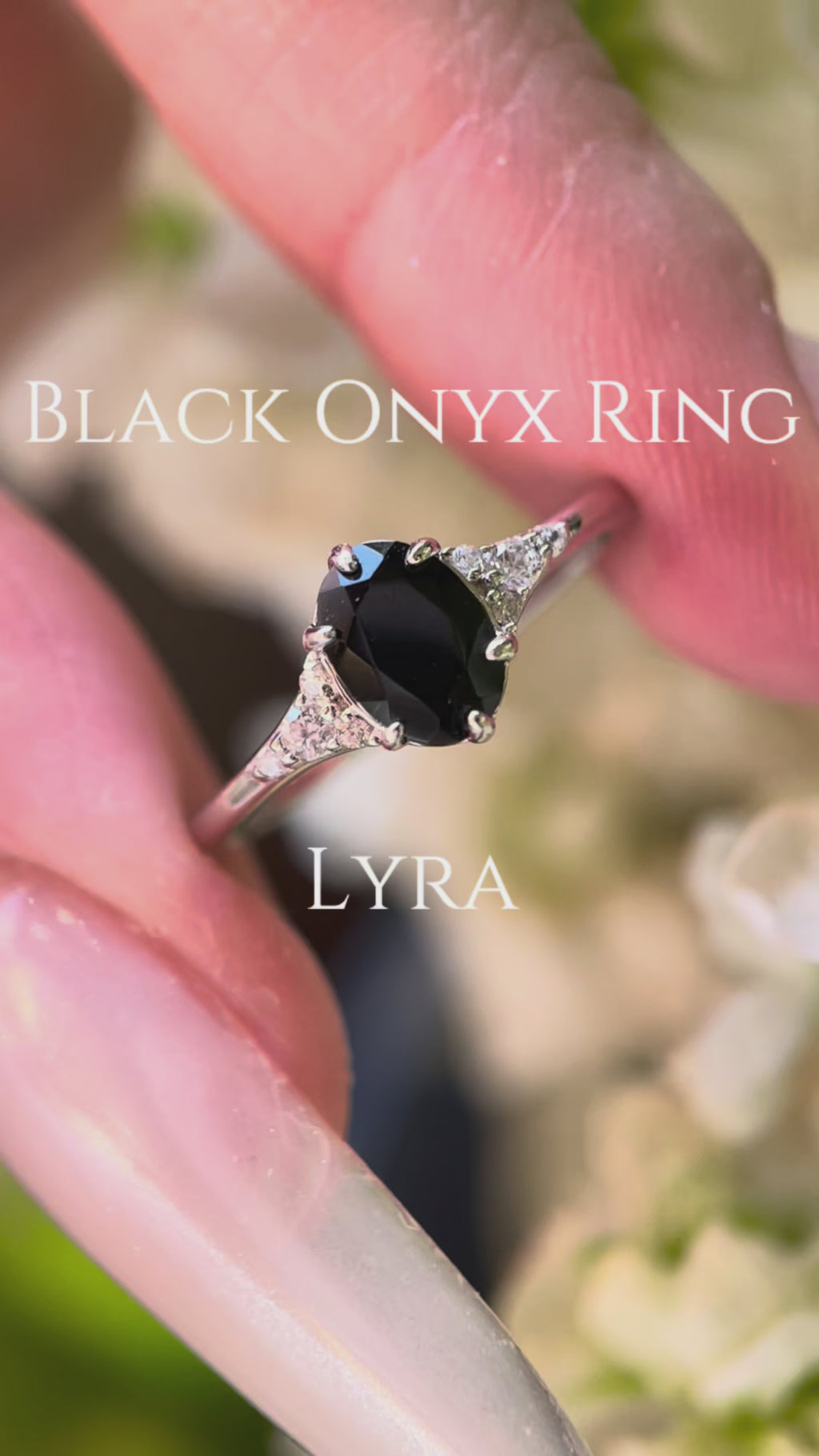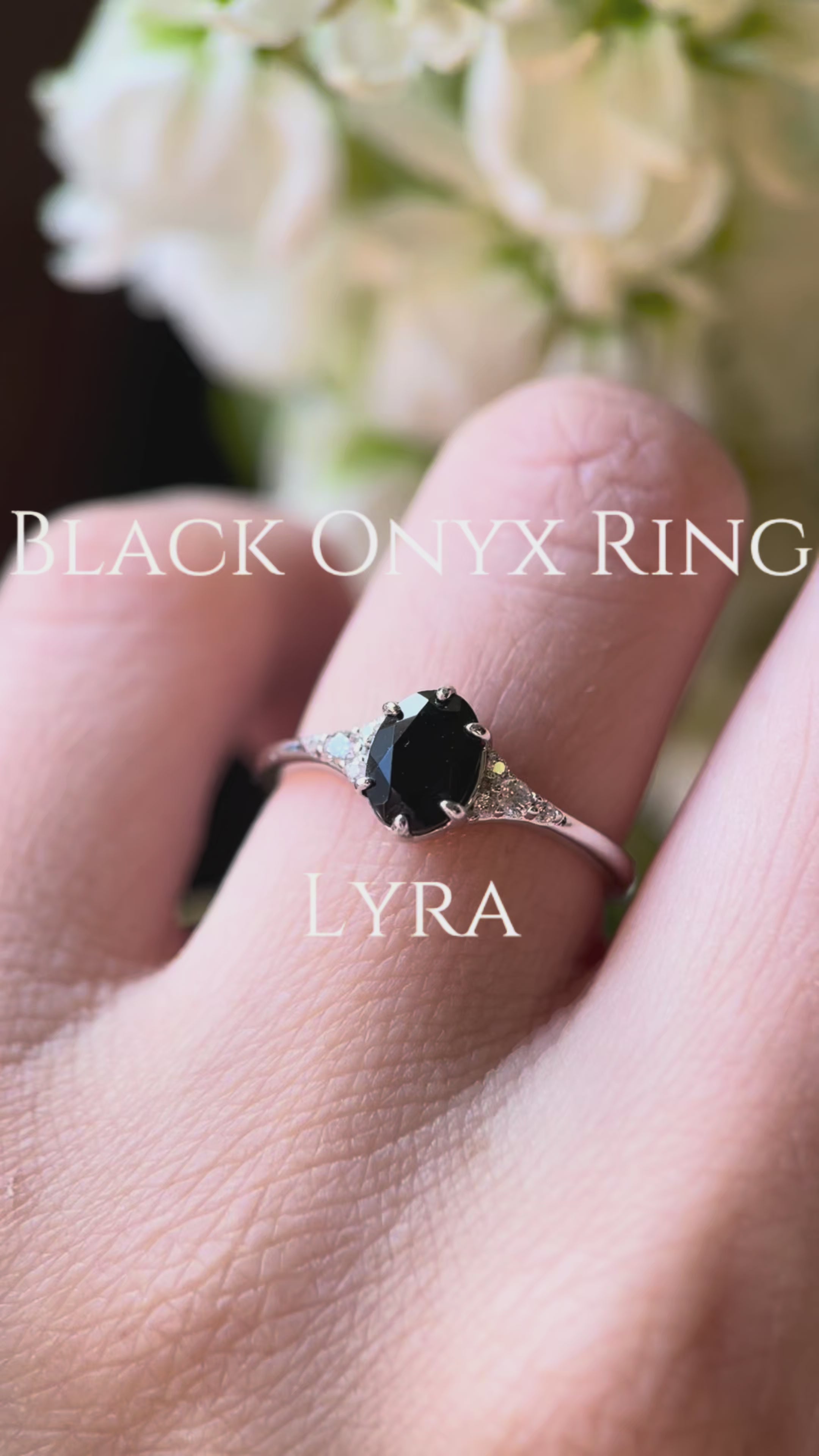 【Lyra】Handmade Natural Black Onyx Engagement Ring 0.75ct Oval Cut