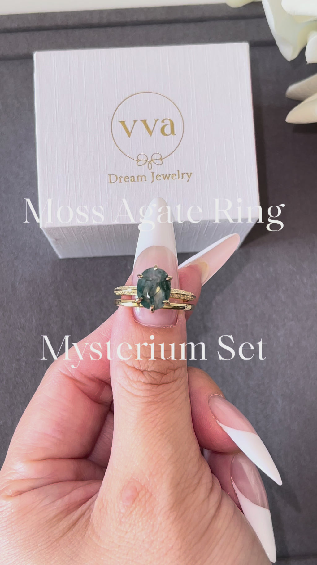 【Mysterium】Unique Handmade Natural Moss Agate Engagement Ring 3ct Oval Shape