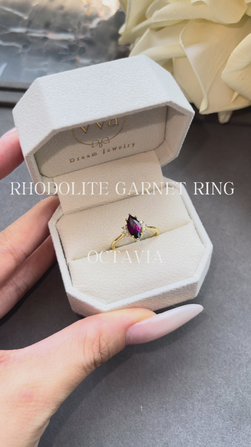 【Octavia】Handmade Natural Rhodolite Garnet Engagement Ring Marquise Shape 1ct