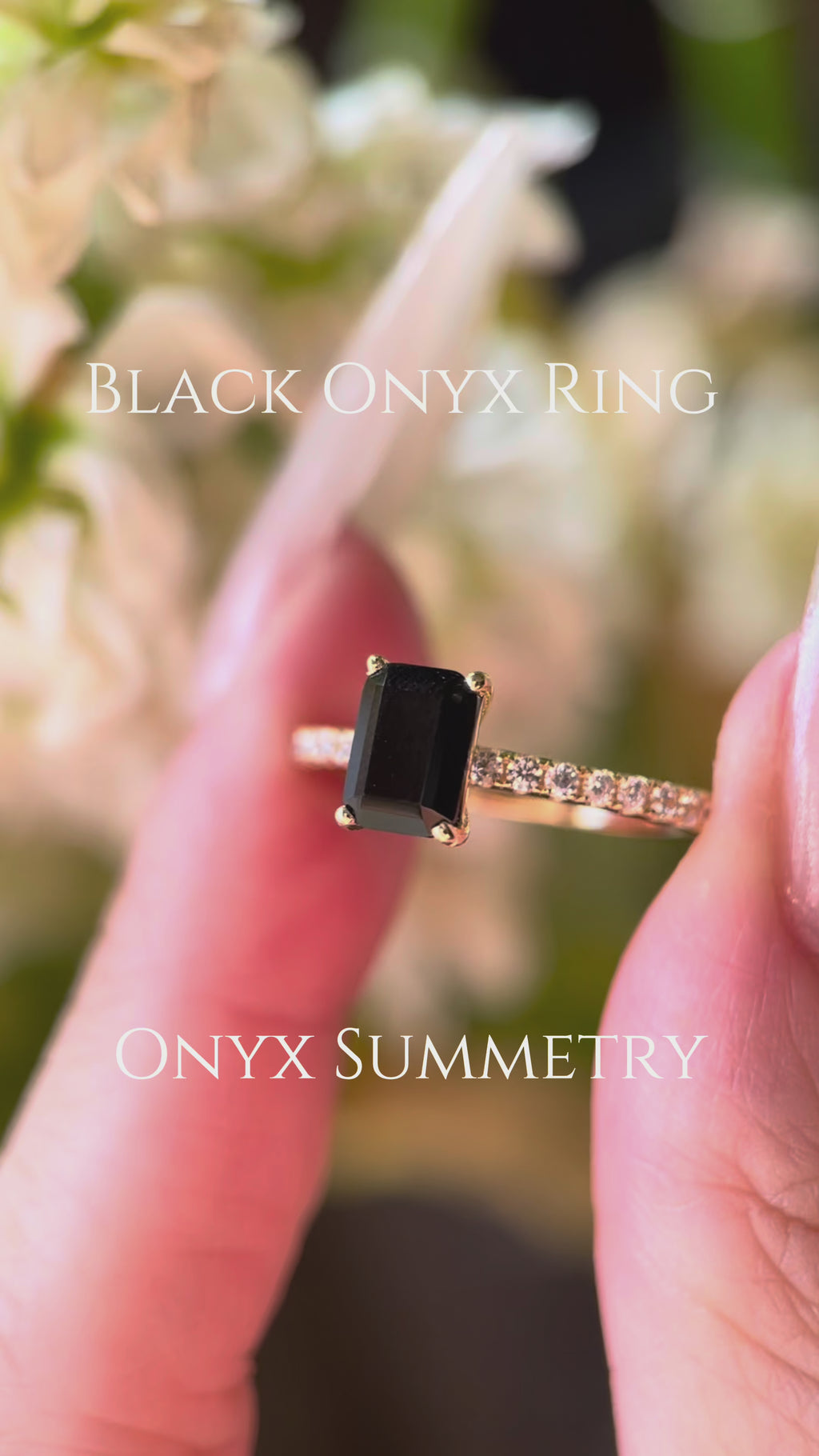 【Onyx Summetry】Handmade Natural Black Onyx Engagement Ring 1ct Emerald Cut