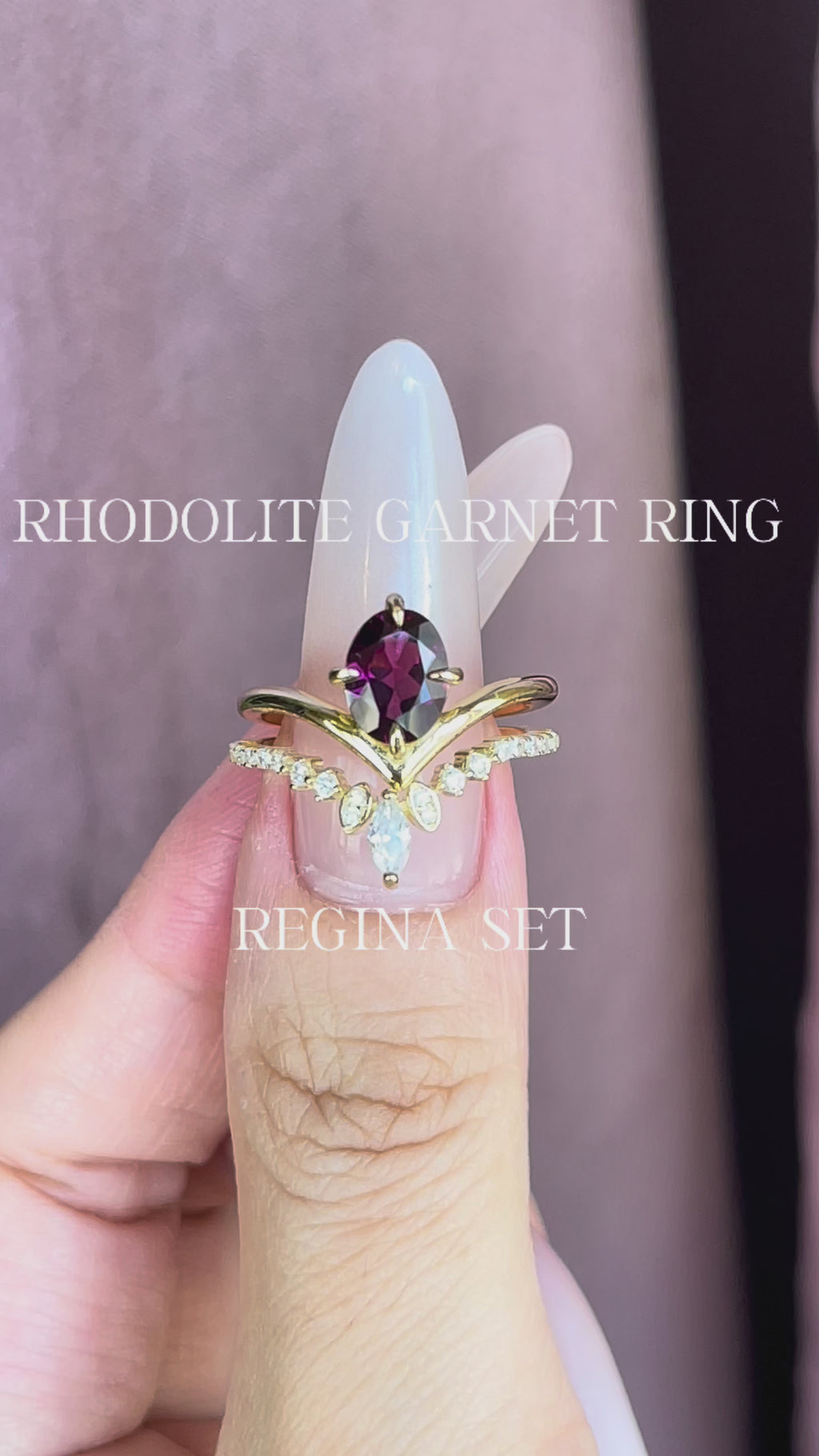 【REGINA SET】Handmade Natural Rhodolite Garnet Engagement Ring Set 2pcs Oval Shape 1.5ct