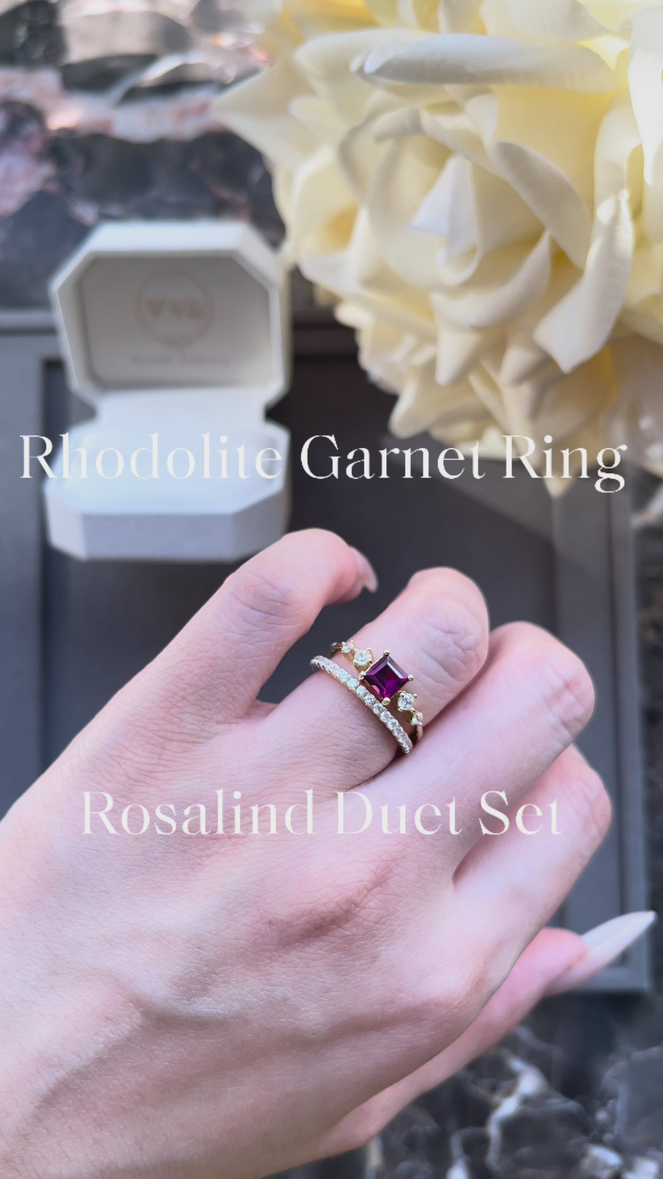 【Rosalind】Unique Handmade Natural Rhodolite Garnet Engagement Ring 0.75ct Princess Shape