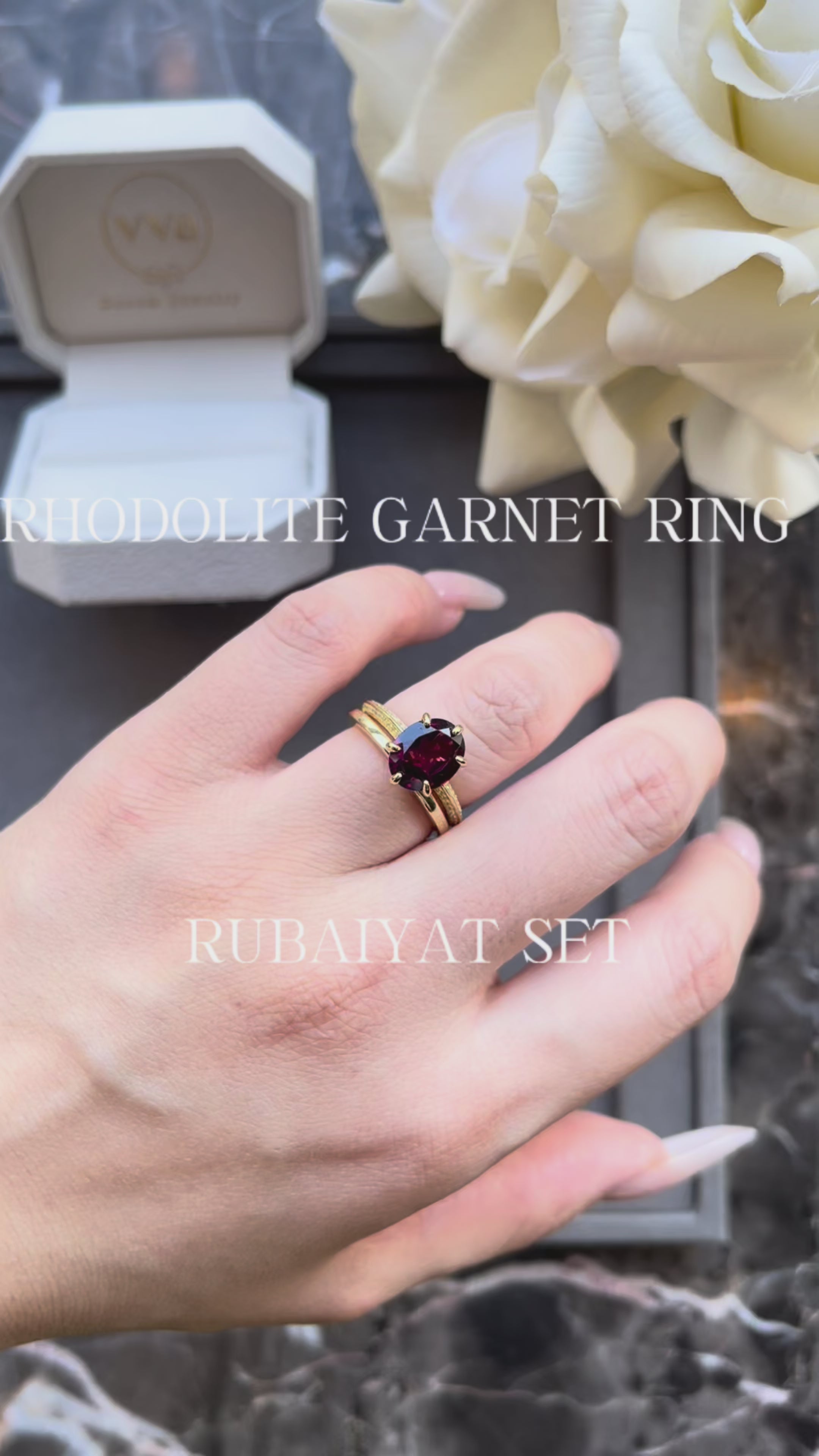 Discover the timeless elegance of this handcrafted engagement ring set, featuring a stunning natural rhodolite garnet in a graceful oval shape. Each piece is meticulously created to celebrate your unique love story, combining the deep, romantic hues of rhodolite with expert artisanal craftsmanship. This distinctive set offers an alternative to traditional diamonds while maintaining the sophistication and durability you deserve. Perfect for those seeking something truly one-of-a-kind, this ring captures both beauty and meaning in every detail.
