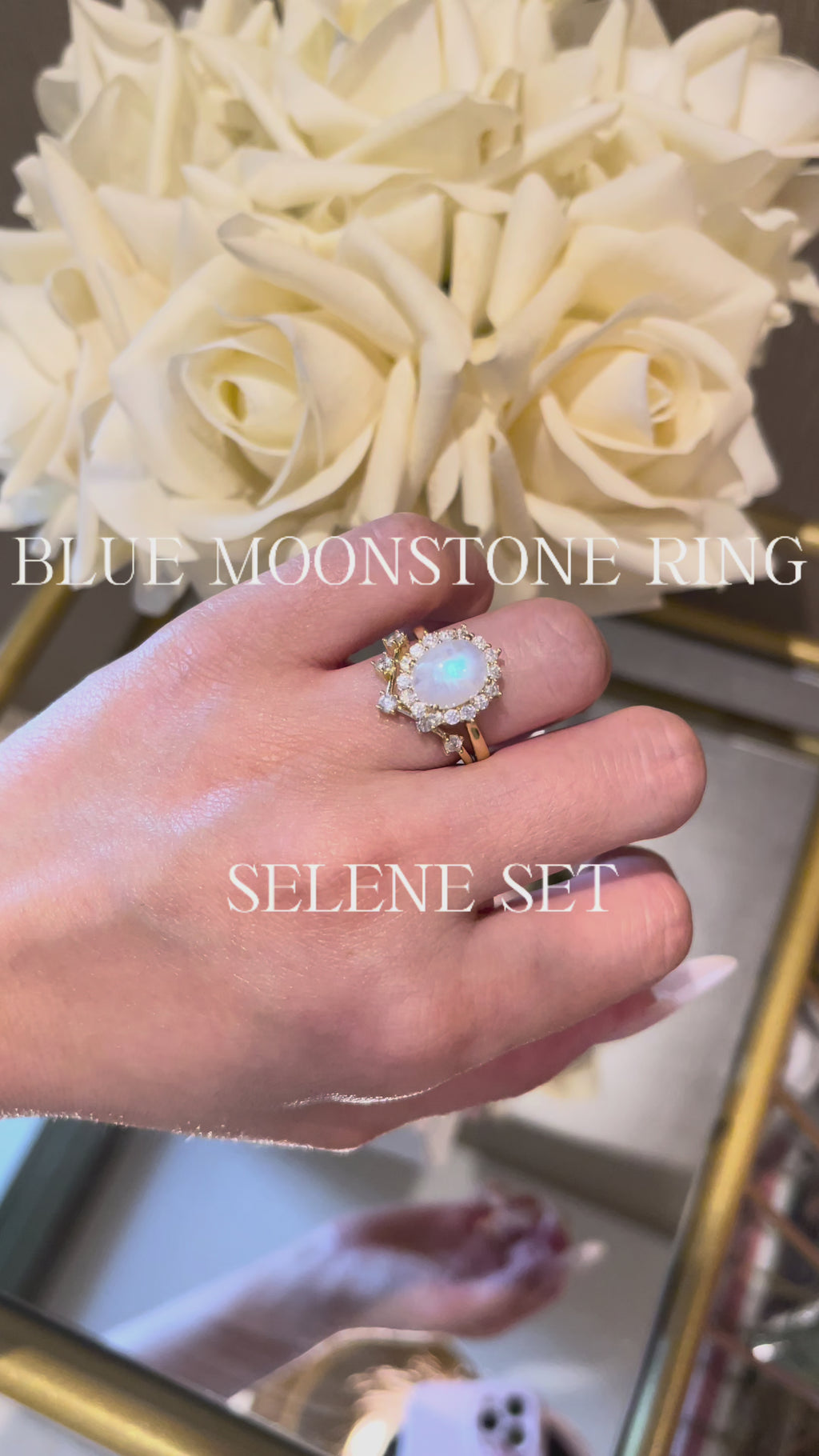 【SELENE】Unique Handmade Natural Blue Moonstone Engagement Ring Oval Shape 3ct