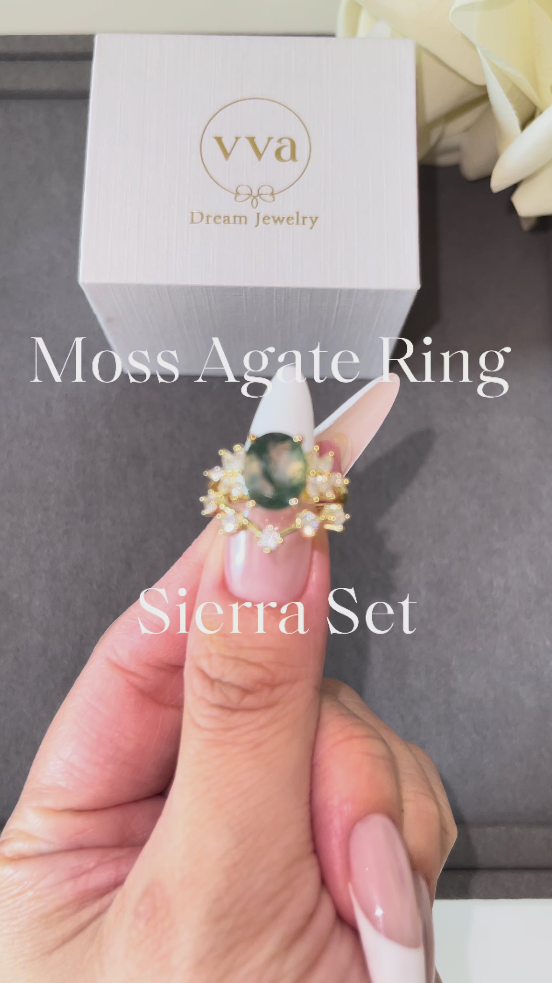 【SIERR】Unique Handmade Natural Moss Agate Engagement Ring Oval Shape 3c