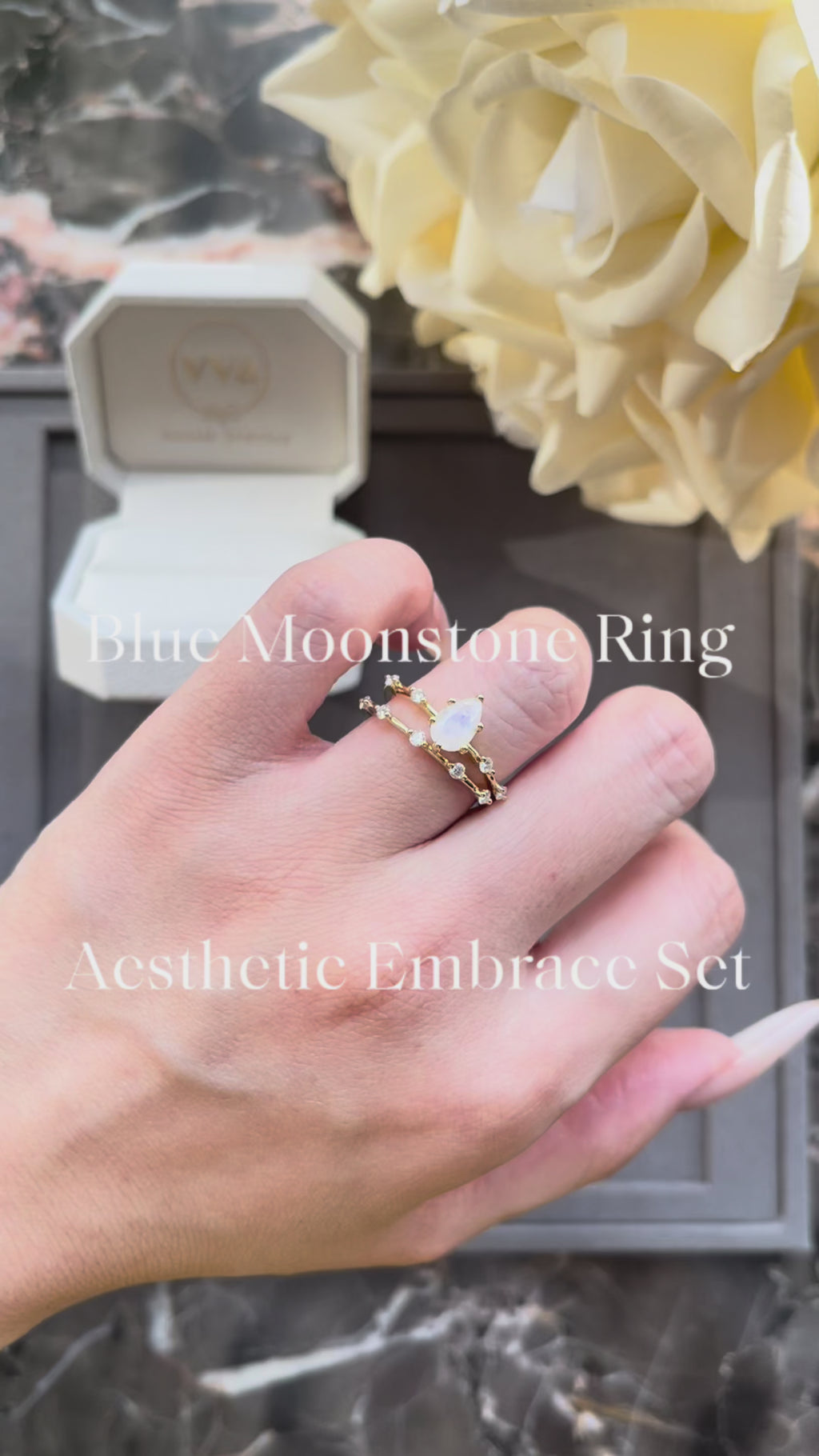【Soulmate Set】Unique Handmade Natural Blue Moonstone Engagement Ring Set 2pcs 0.75ct Pear Shape