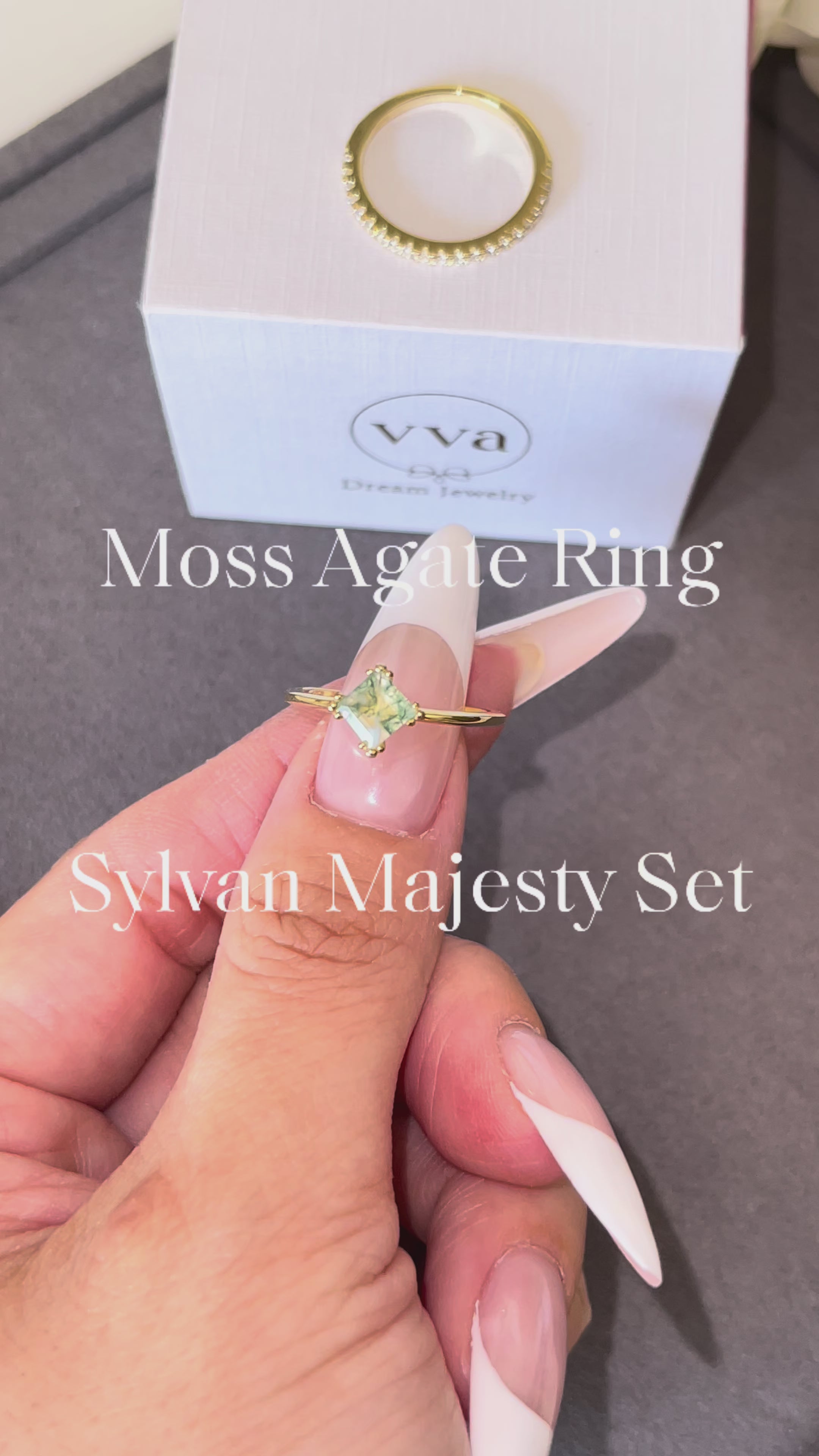【Sylvan Majesty Set】Unique Handmade Natural Moss Agate Engagement Ring Set 2pcs 0.75ct Princess Shape
