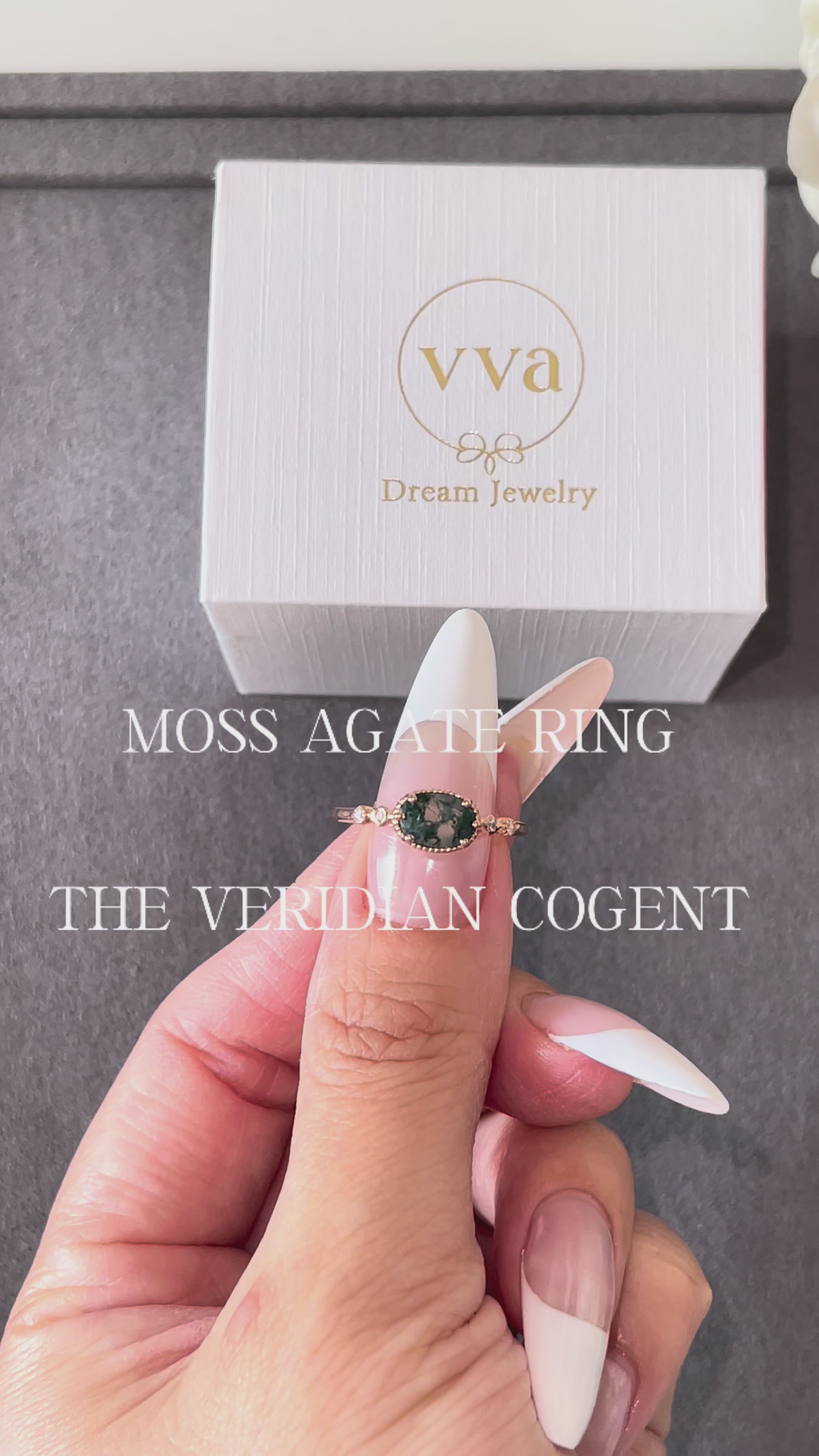 【The Still Pond】Unique Handmade Natural Moss Agate Engagement Ring 0.75ct Oval Shape