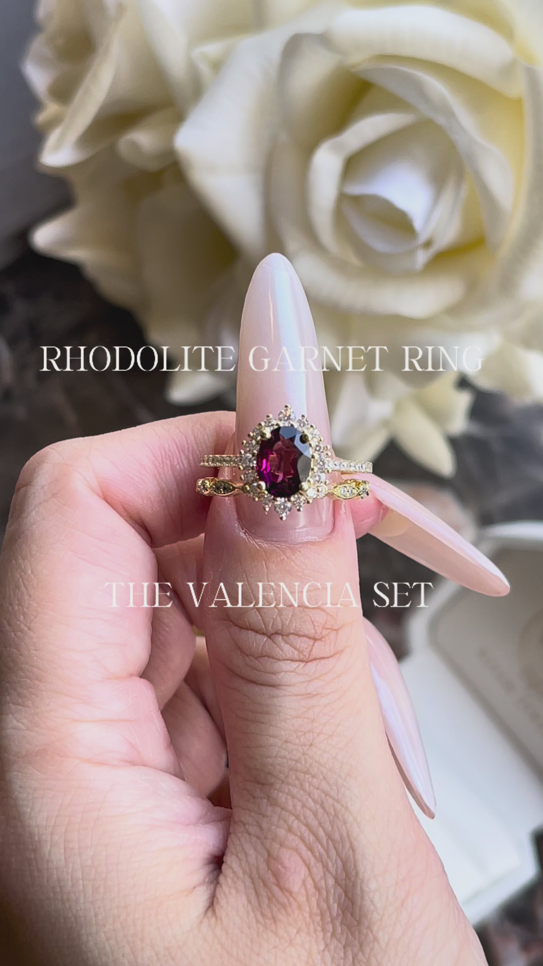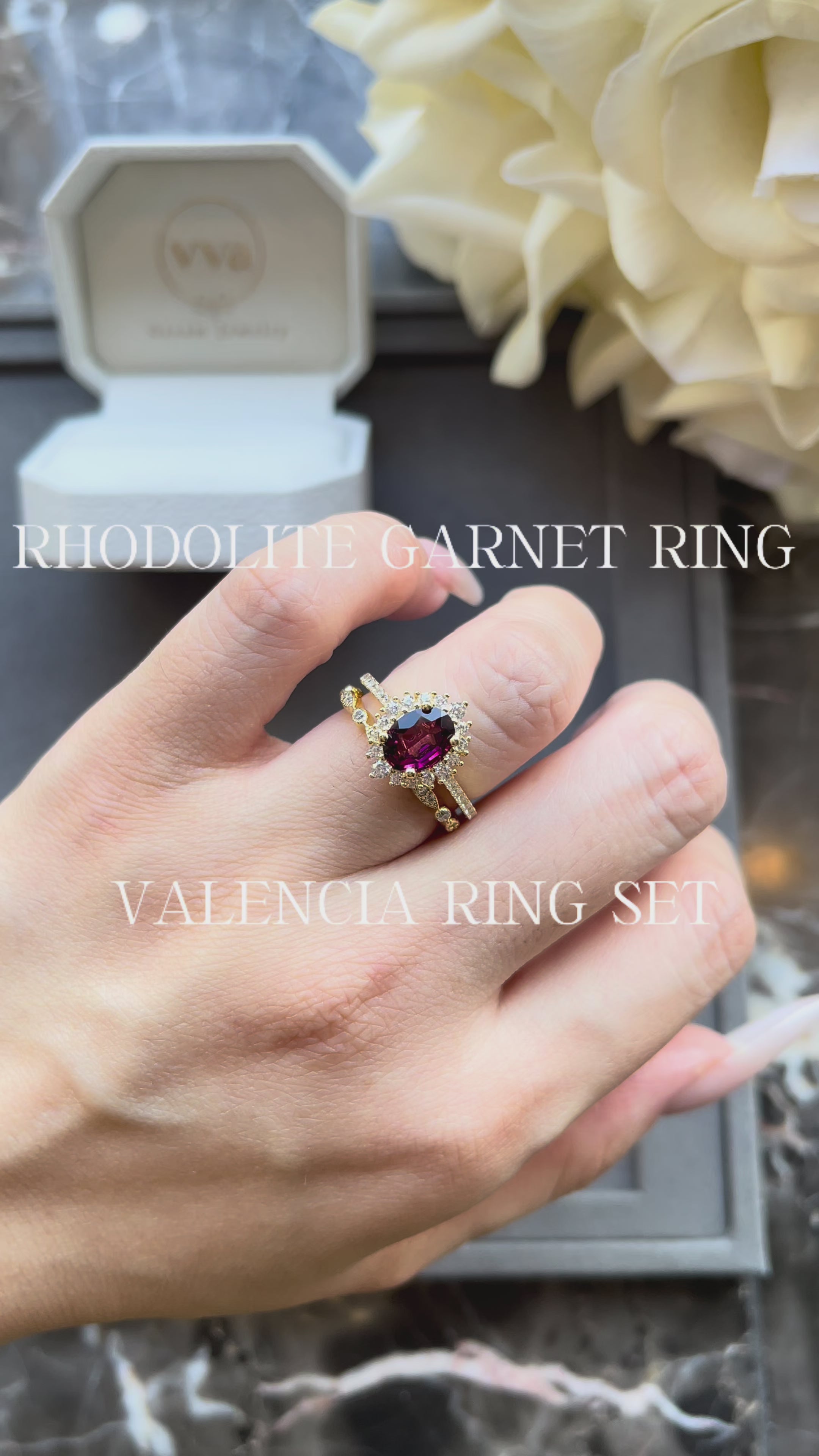 【Valencia】 Handmade Natural Rhodolite Garnet Engagement Ring 1.5ct Oval Shape