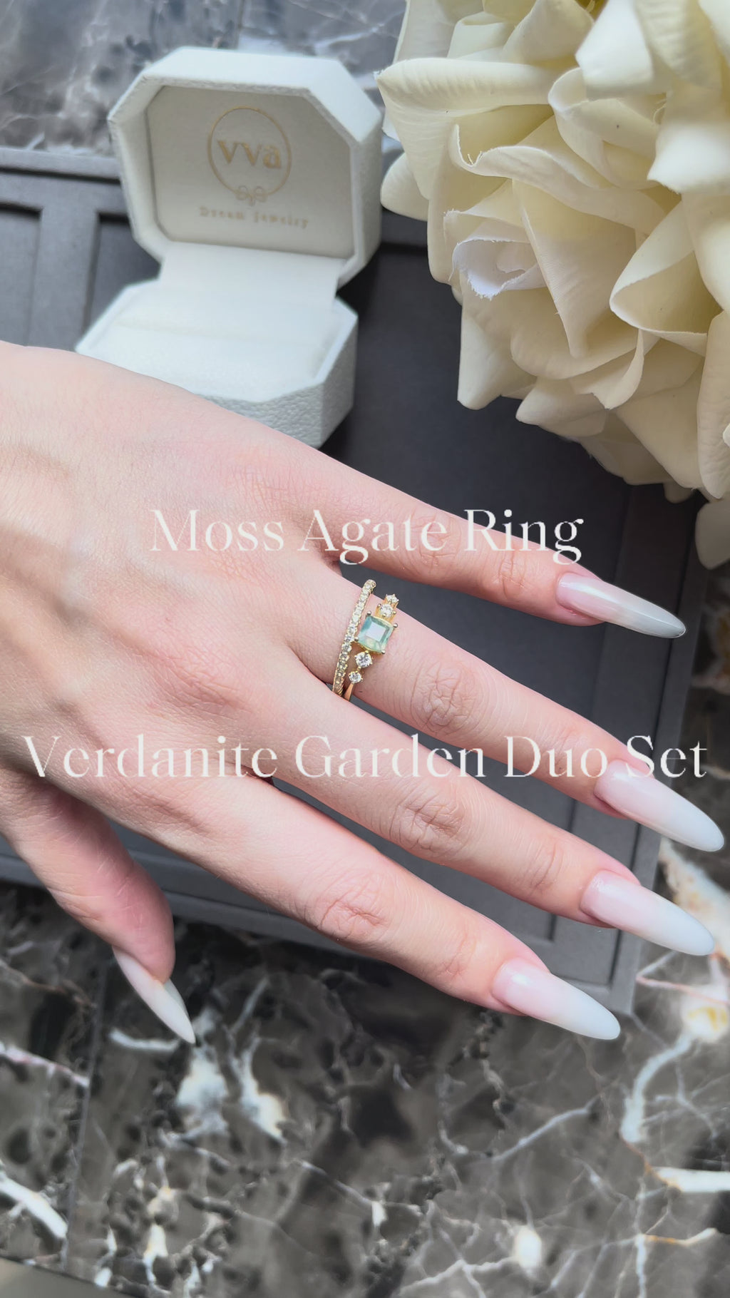 【Verdanite Garden】Unique Handmade Natural Moss Agate Engagement Ring 0.75ct Princess Shape