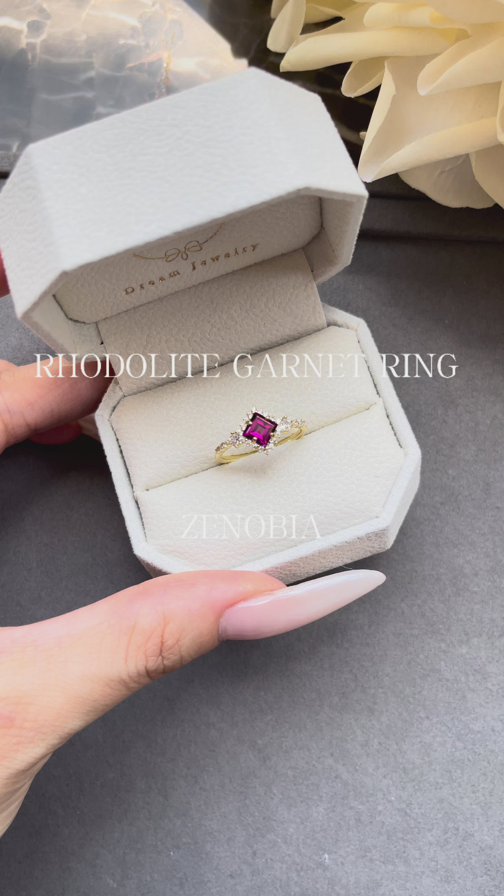 【ZENOBIA】Handmade Natural Rhodolite Garnet Engagement Ring Princess Shape 0.75ct